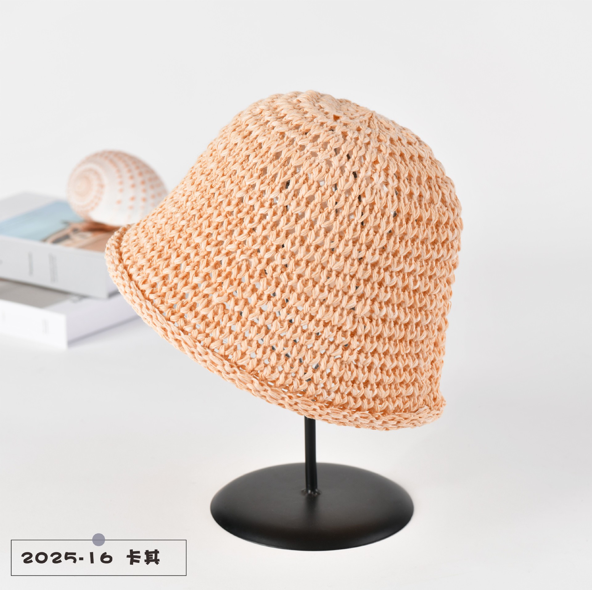 2025年編み込みバケットハット レディース 夏 多用途 個性的デザイン カラーブロック フィッシャーマンハット 透かし彫り 日焼け止め帽子 つば広