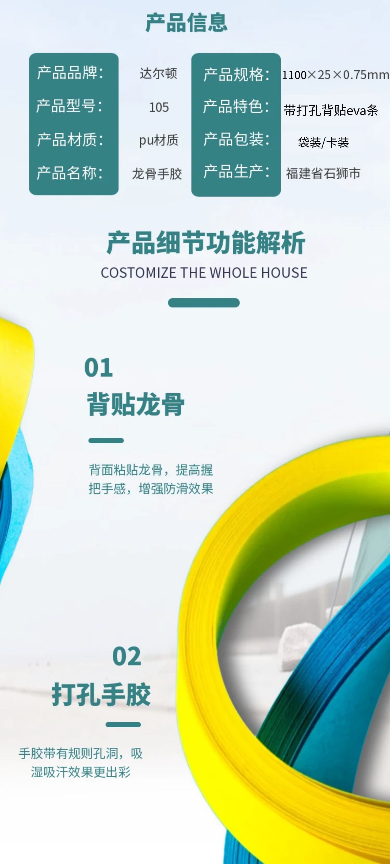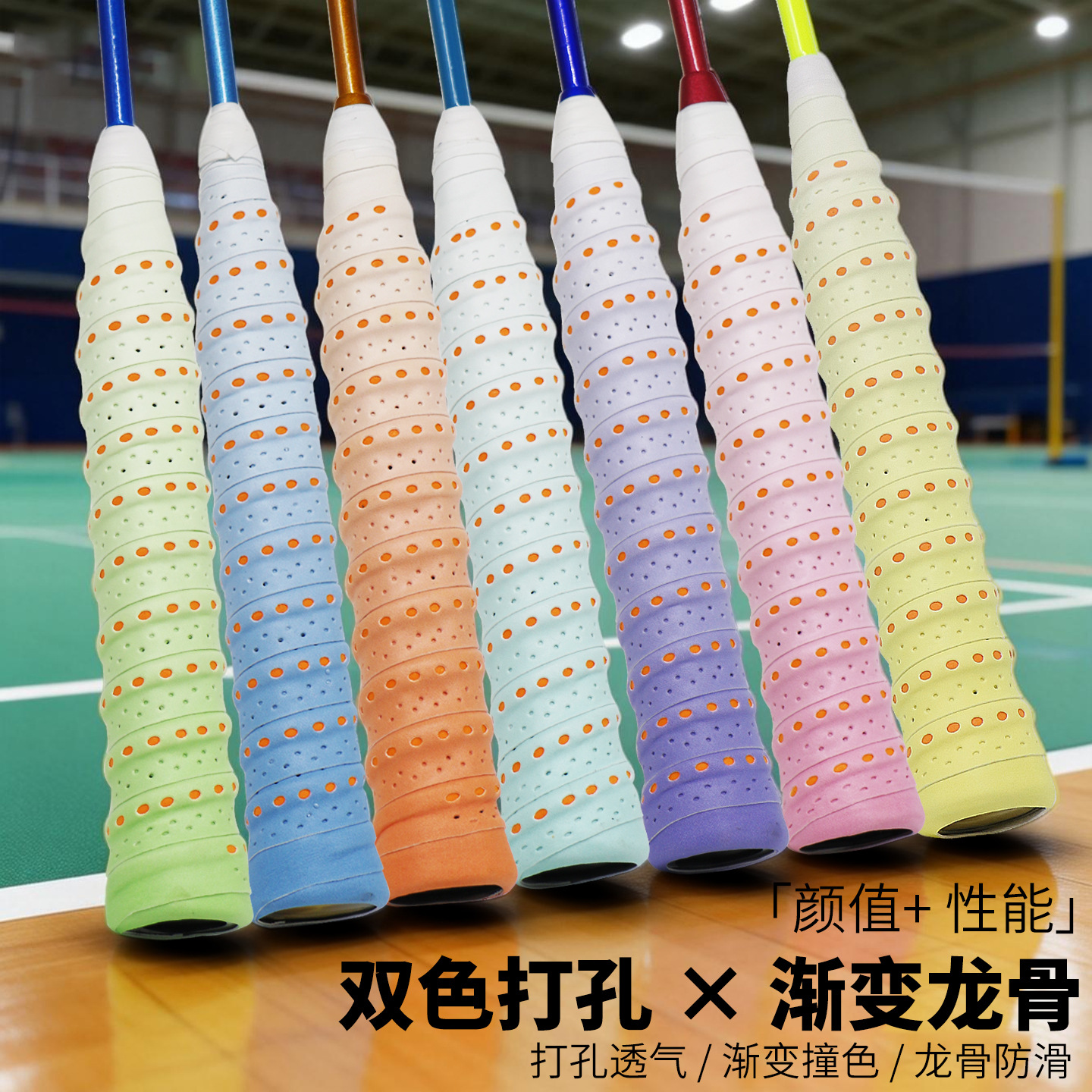 通気性耐摩耗性ハンドゴムダルトンpu105 2色パンチングキール手ゴムバドミントンテニスラケット2色吸汗ベルト