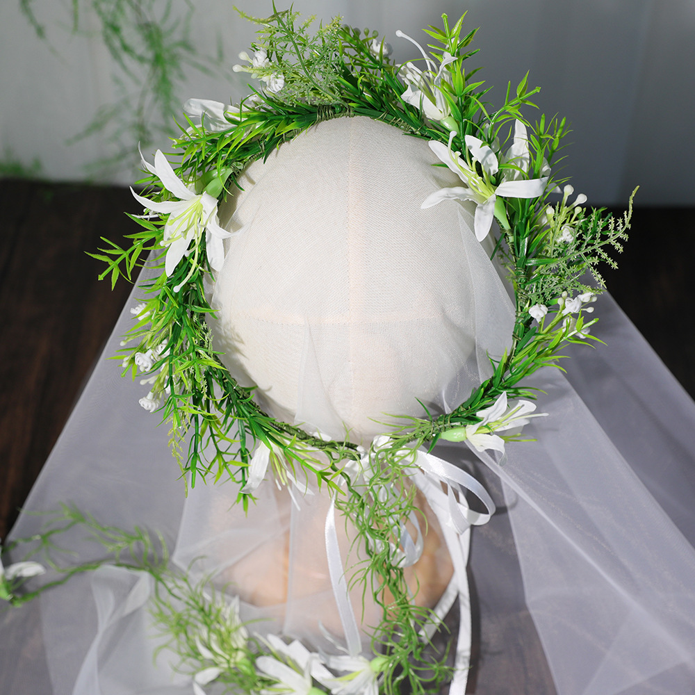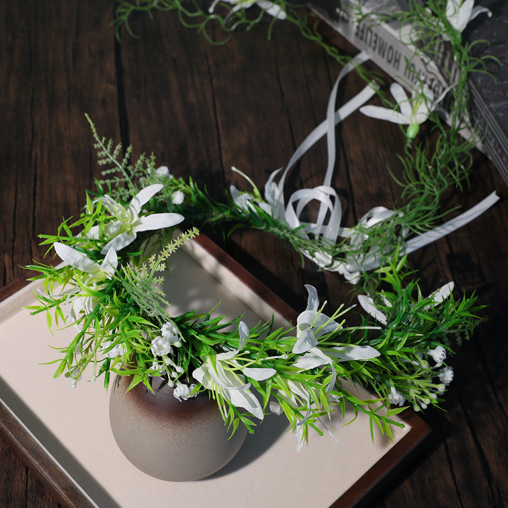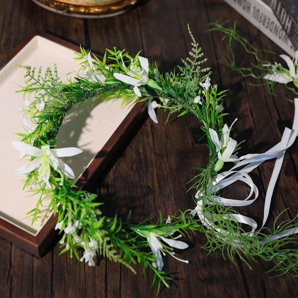 ブライダルガーランド、ヨーロッパとアメリカで人気のクロスボーダーヘッドドレス、エレガントな韓国風ドライフラワーヘアアクセサリー、海辺の休暇写真撮影用アクセサリー