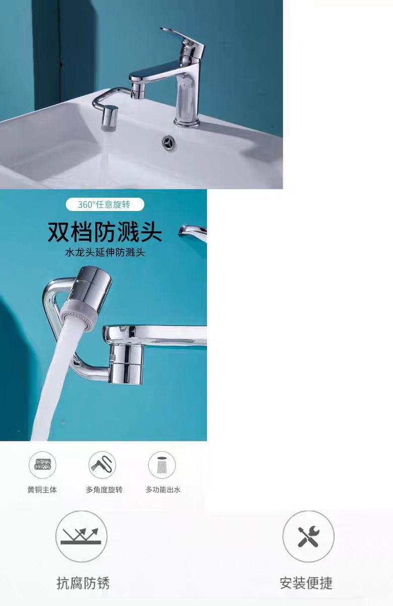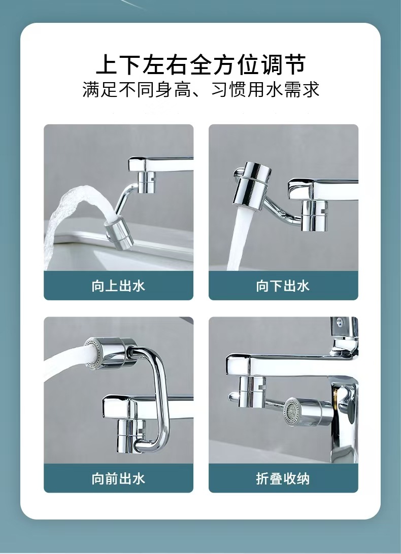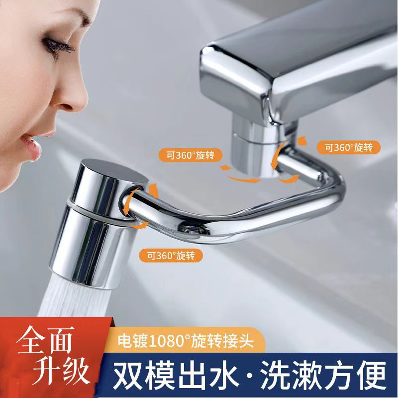 洗脸面盆龙头机械臂万向1080°可旋转水龙头防溅水延伸器