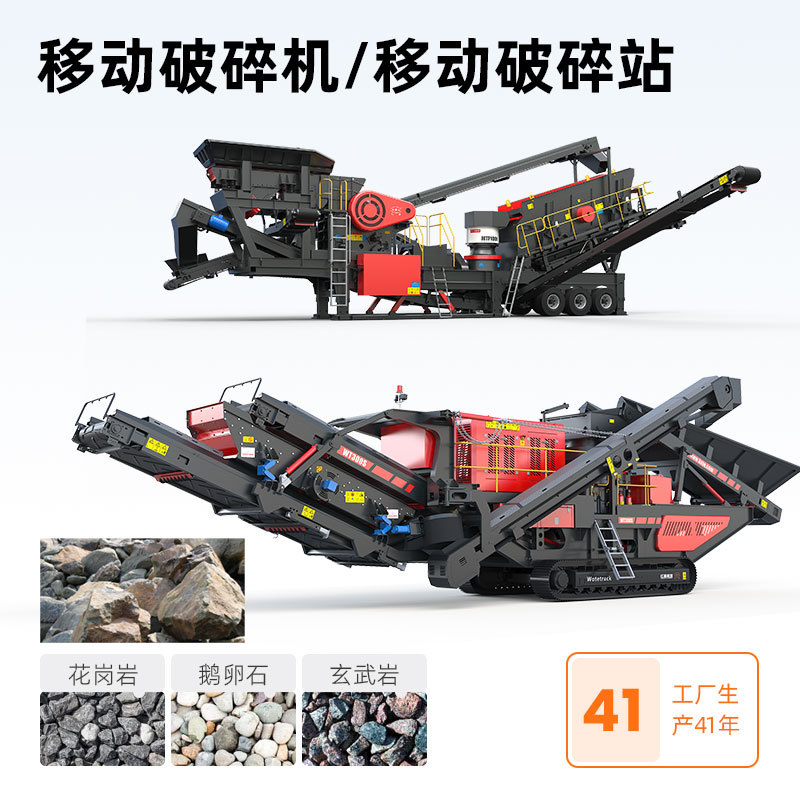 移動式砂利生産ライン、ゴム石、花崗岩、中細破砕一体型砕石、玄武岩破砕機