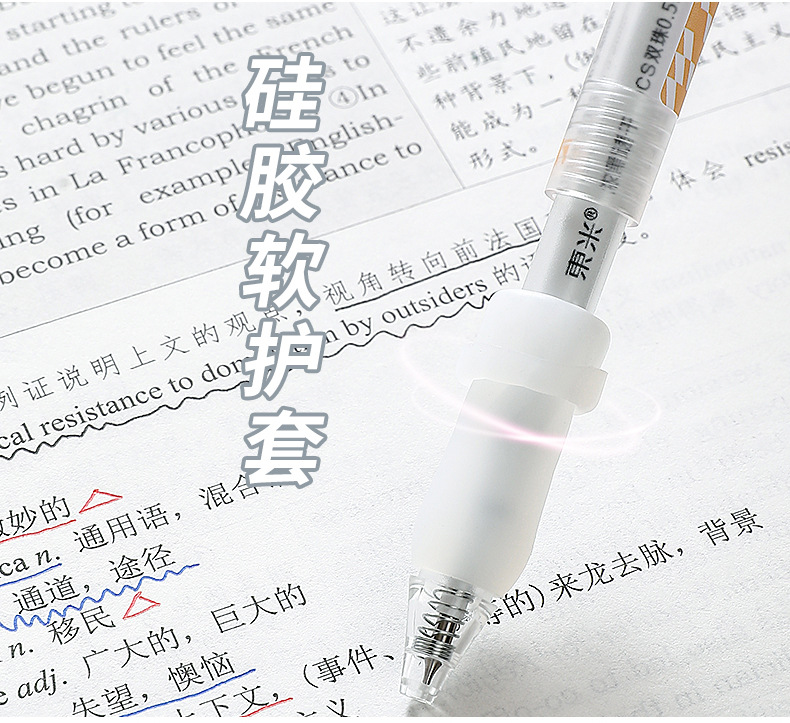 東米955低重心押し中性ペン柔らかいシリコンシース双珠cs速乾ブラシ問題ペン0.5黒ペン