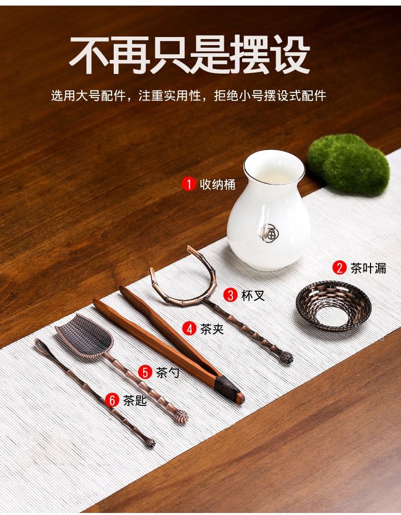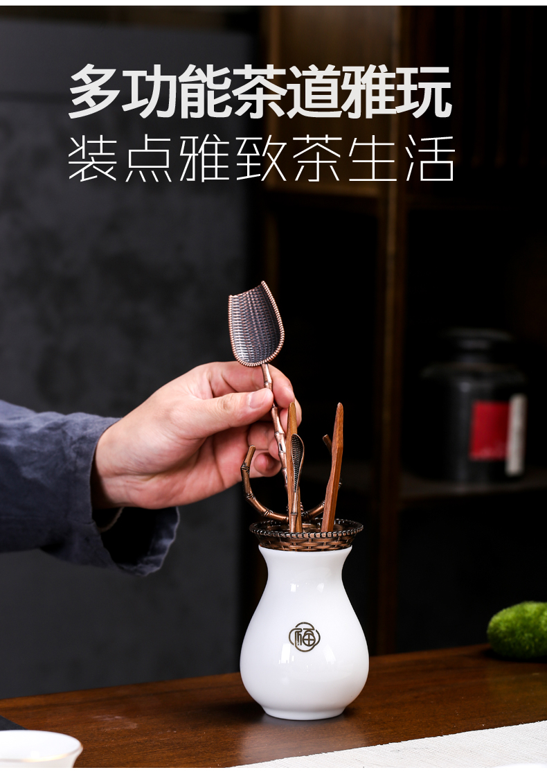 羊脂玉陶磁器六君子茶道零配カンフー茶器部品茶芸置物純銅部品
