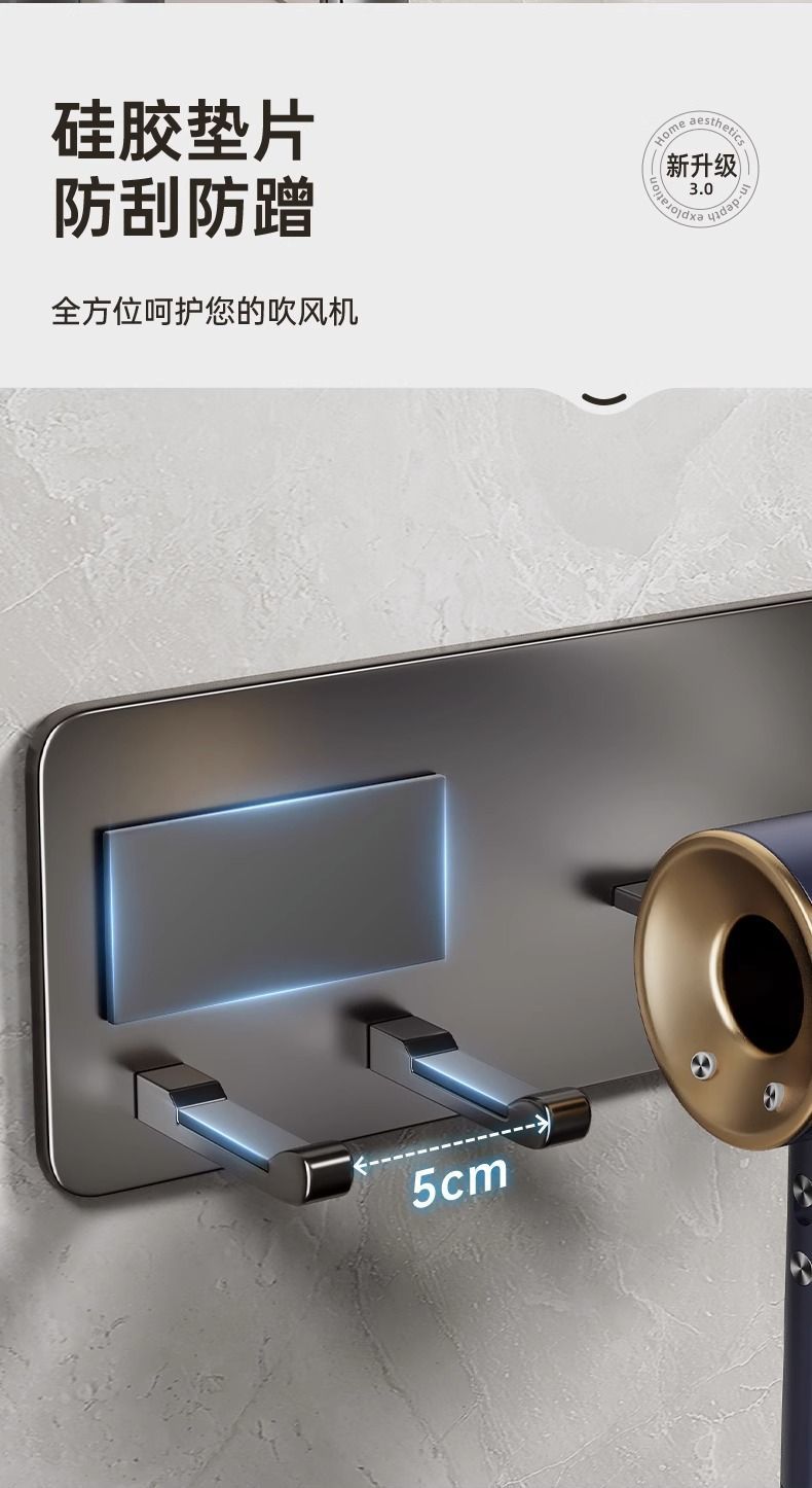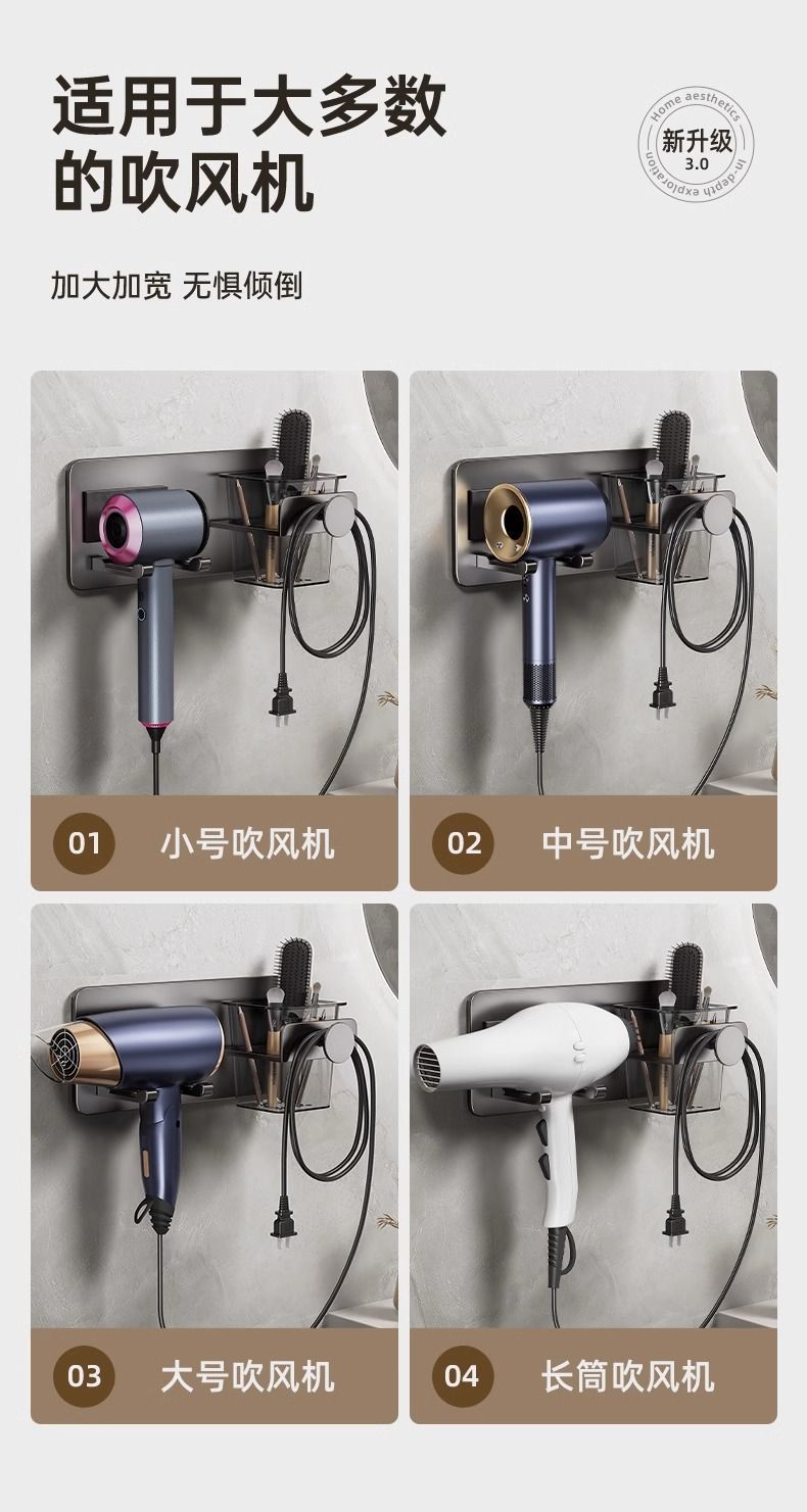 ✅ ヘアドライヤーホルダー、ヘアドライヤー収納ラック、歯ブラシホルダー付き、穴あけ不要、吸盤式壁掛け収納、洗面台用
