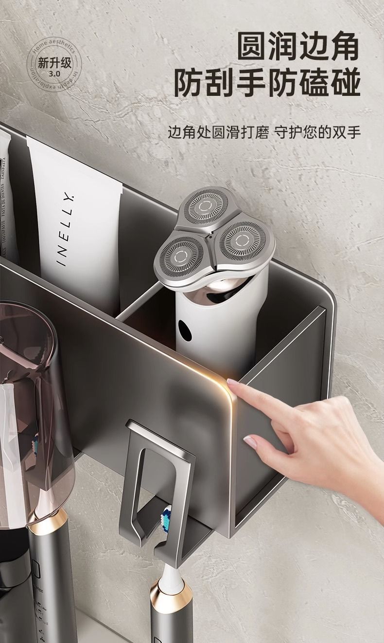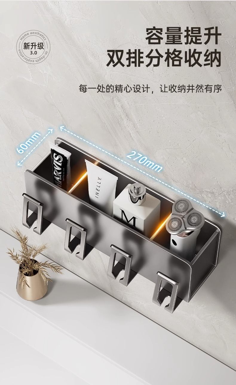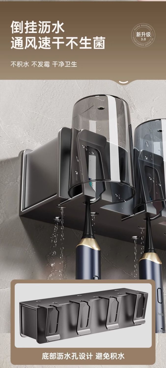 穴なし銃灰歯ブラシカップ壁掛け式トイレ歯ブラシ壁掛け式家庭用収納棚