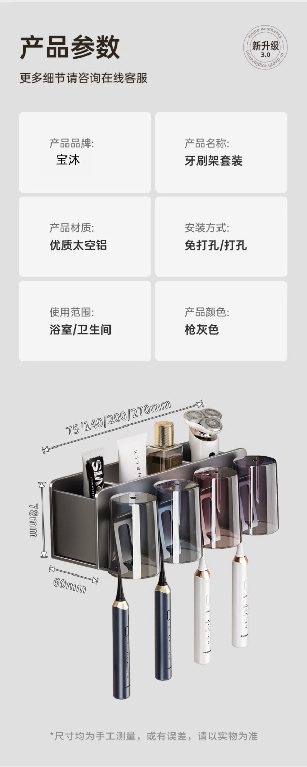 歯ブラシ棚棚棚トイレ穴なし壁掛け式壁うがい電動歯ブラシカップ歯磨き粉カップホルダー