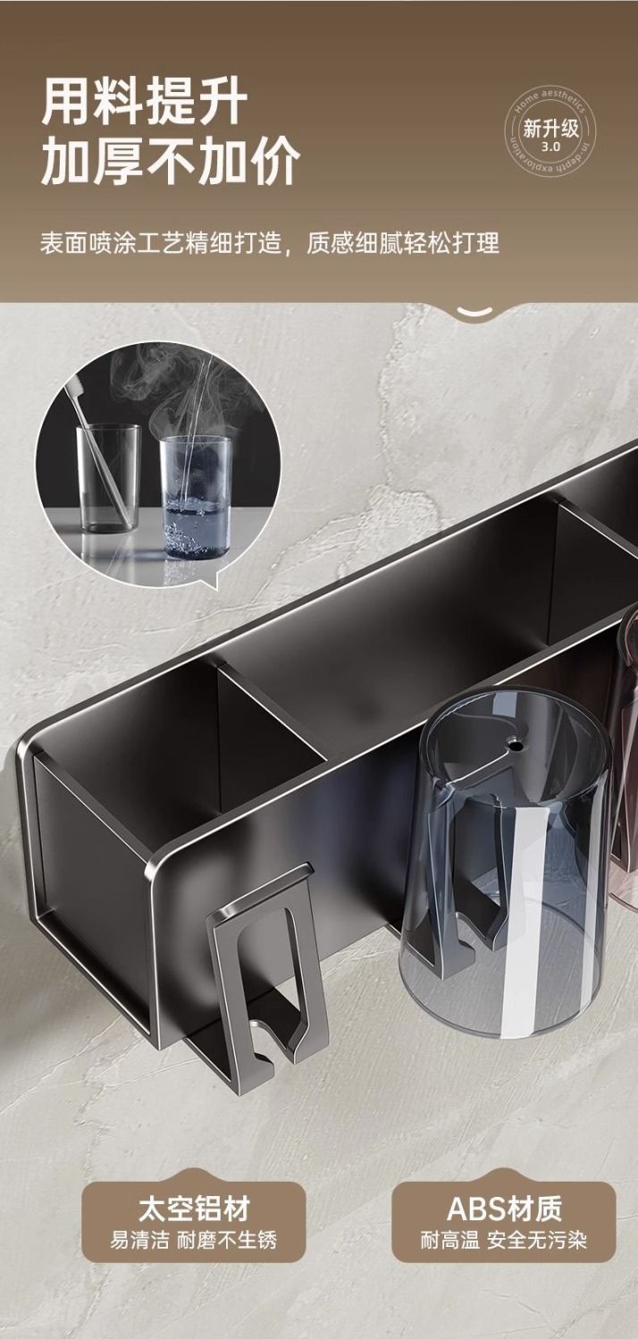 牙刷置物架免打孔太空铝刷牙杯漱口杯壁挂牙膏收纳浴室卫生间挂架