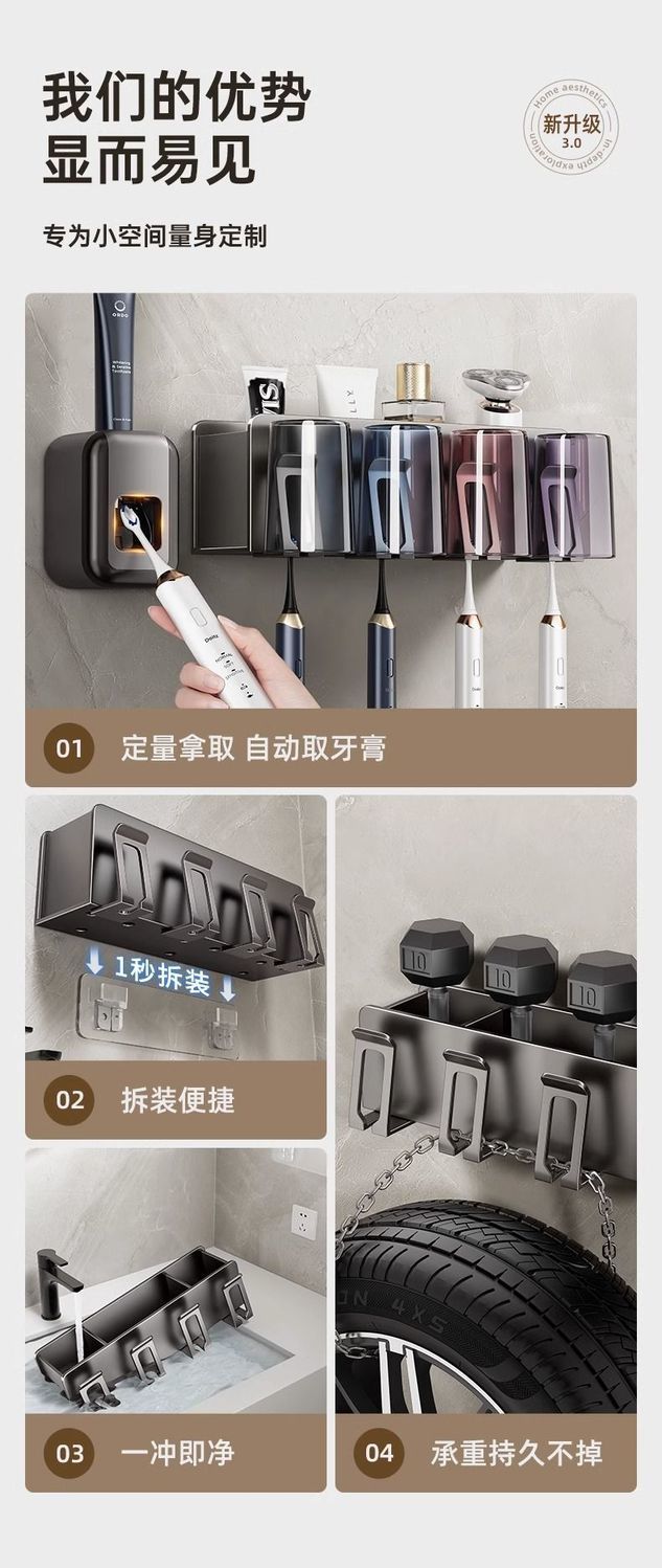 卫生间吸盘牙刷家庭牙刷牙杯漱口杯刷牙杯纳洗漱台壁挂置物收纳架