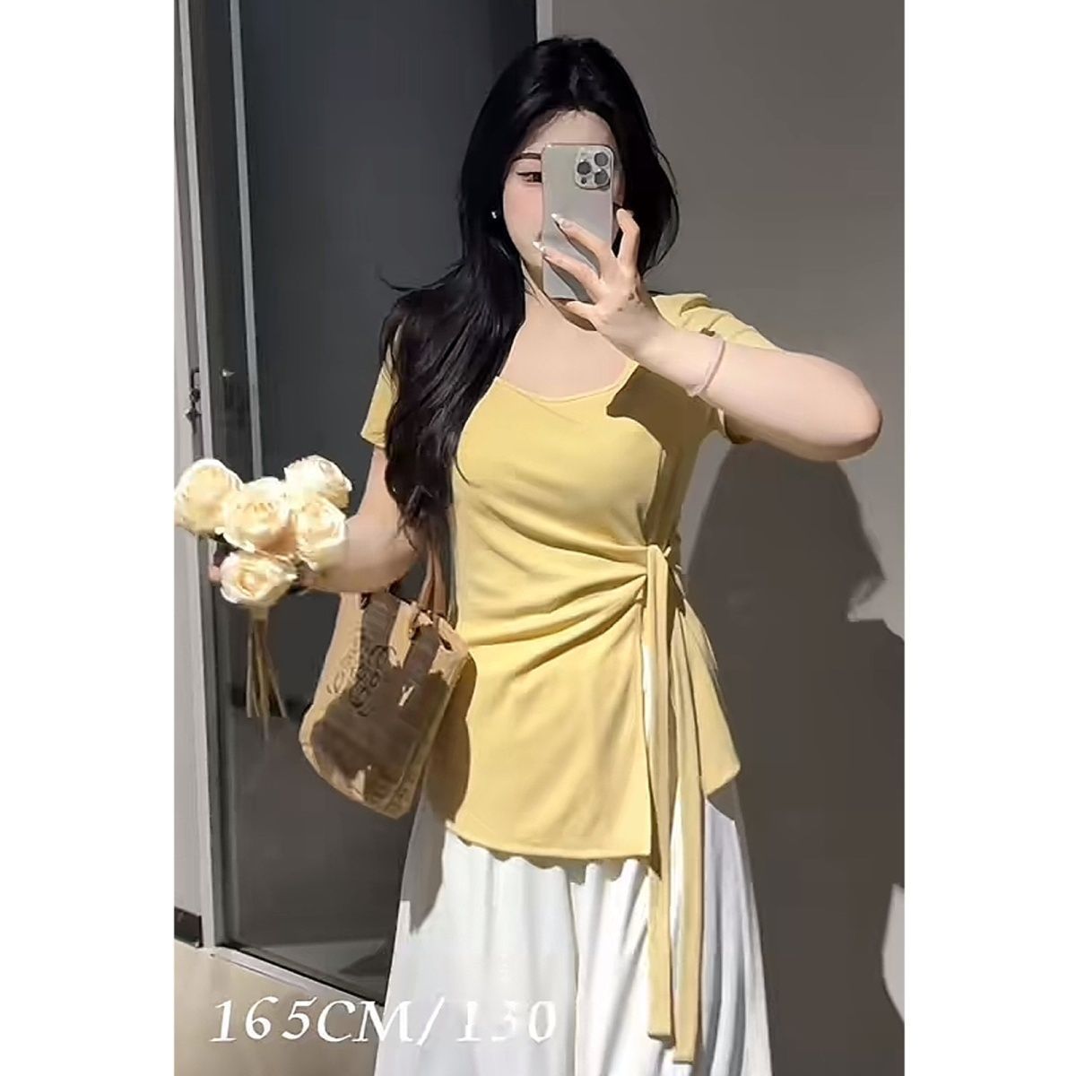 2024年純欲風蝶結びのレース付きtシャツの早秋のスリムなショートファッションの上着ins