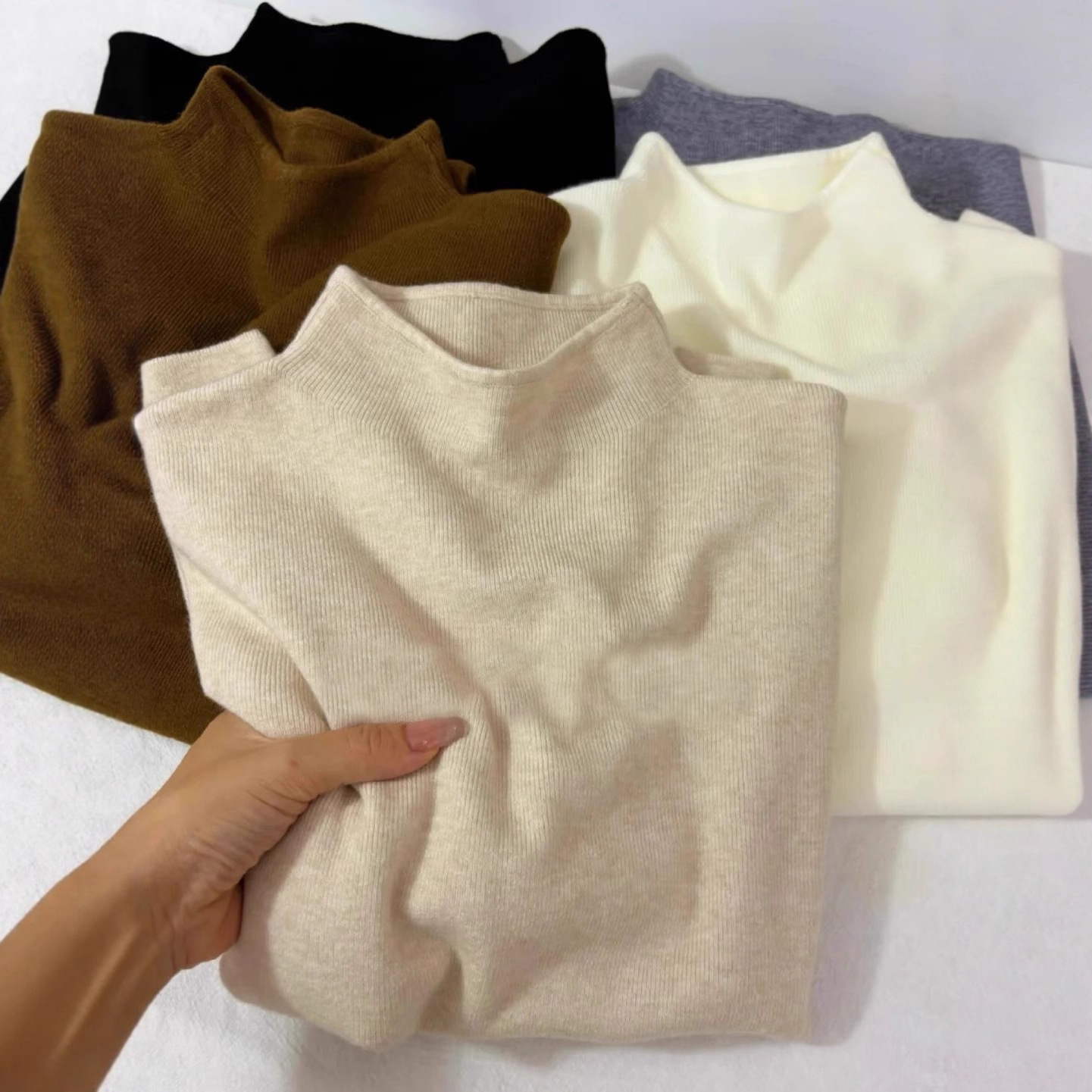 小众简约设计小立领纯色打底衫女秋冬季韩版休闲百搭修身内搭上衣