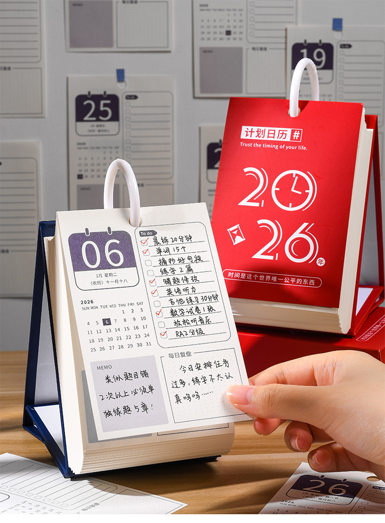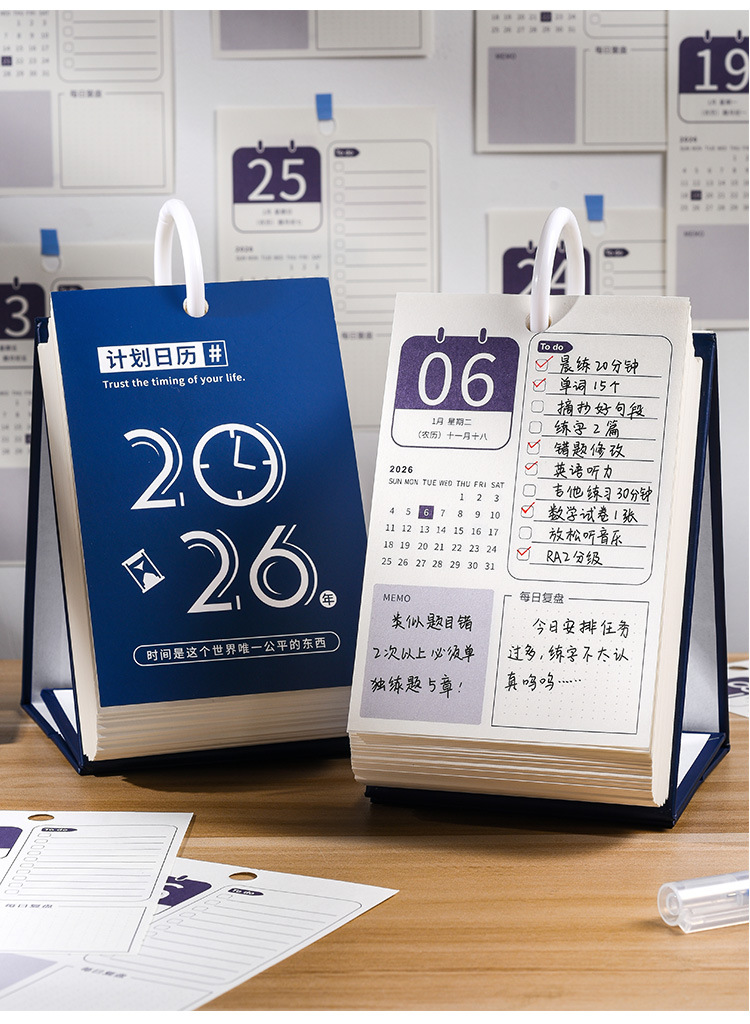 2026年プランニングカレンダー 卓上カレンダー メモ帳 学生向け 自己管理 チェックイン メモ 学習 365日 デスクトップデコレーション