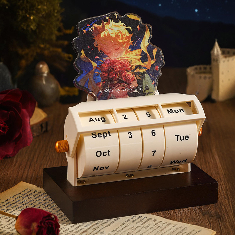 星梦王子玫瑰转轮万年历复古台历可爱治愈高颜值礼物桌面日历摆件