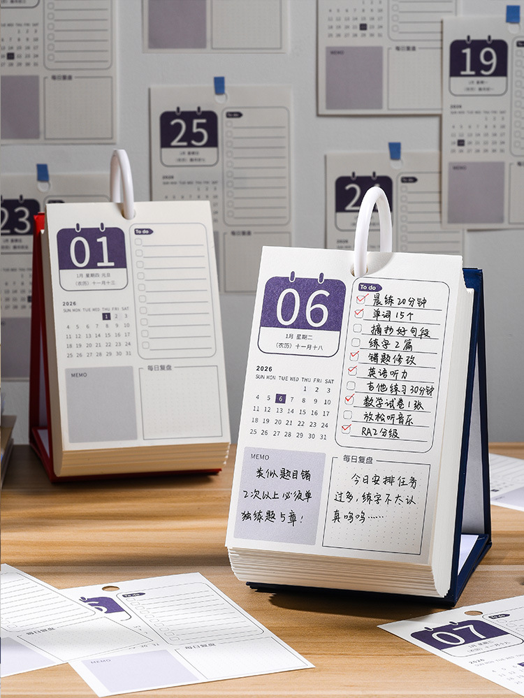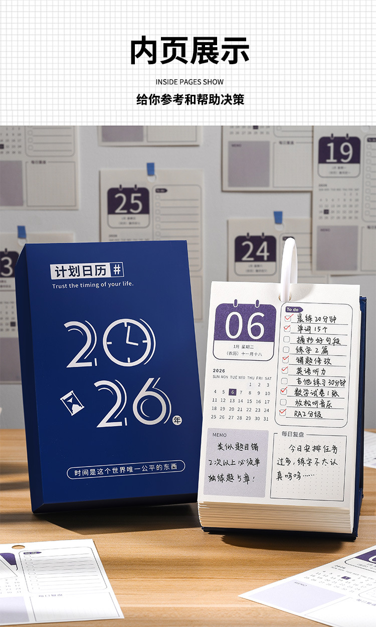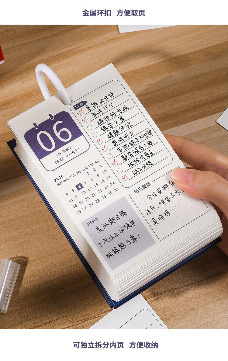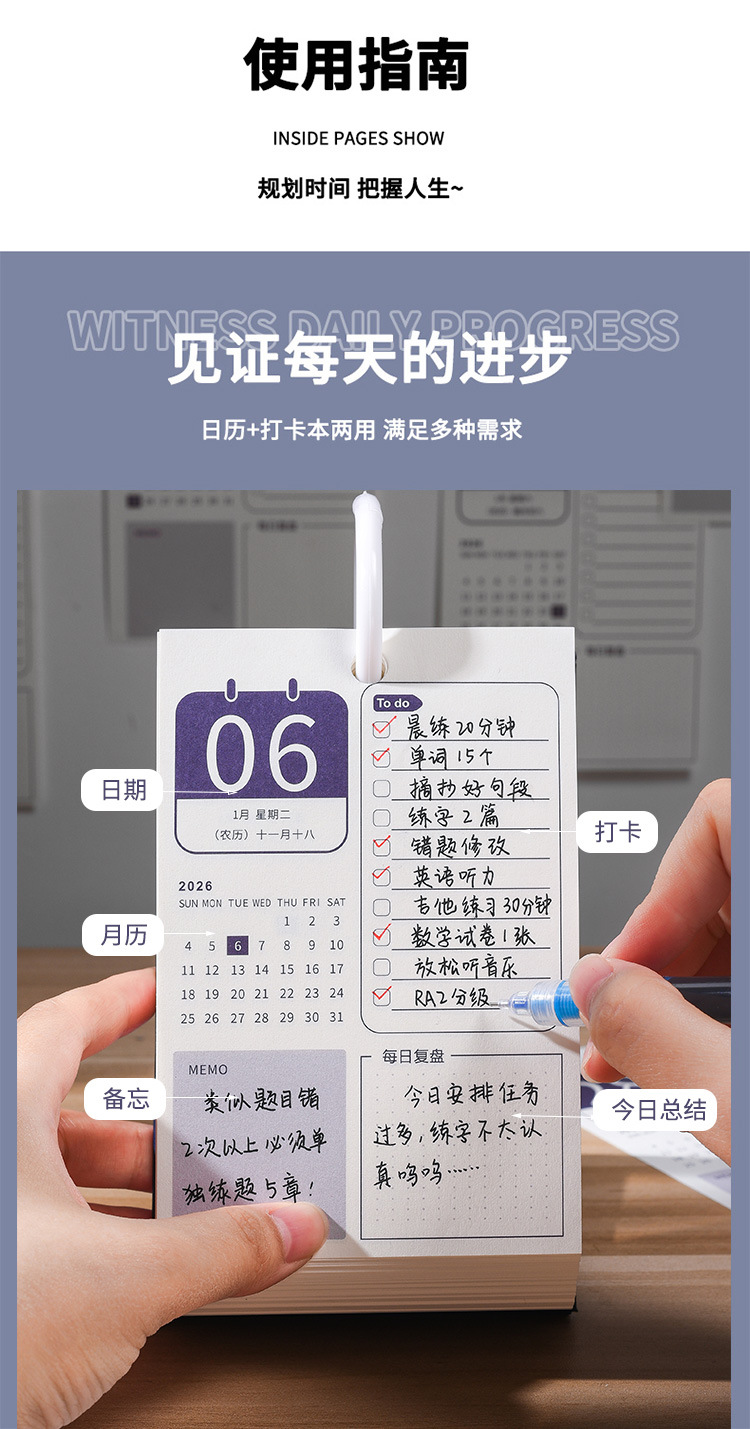 2026 横型プランカレンダー学習自己規律チェックイン学生プランナークリエイティブデスクトップカレンダーフリップデスクカレンダー