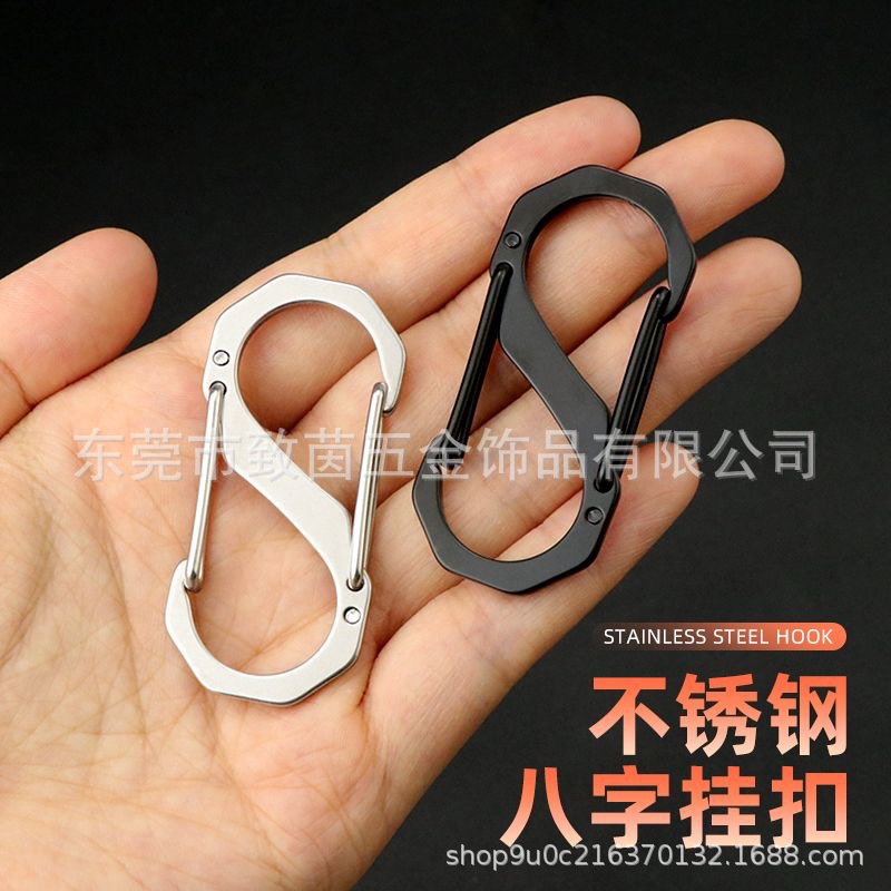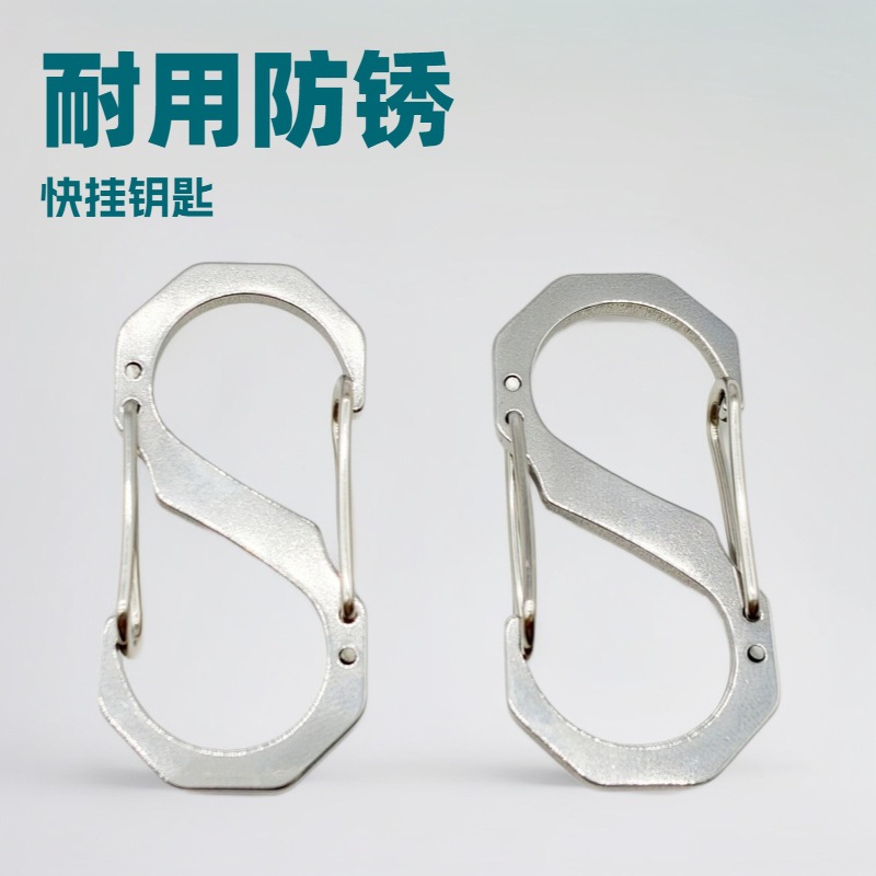 304ステンレス登山ボタンs型8字ボタン多機能フック屋外キャンプ耐久防錆快掛キーホルダー