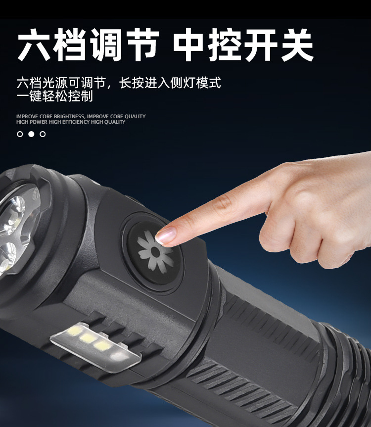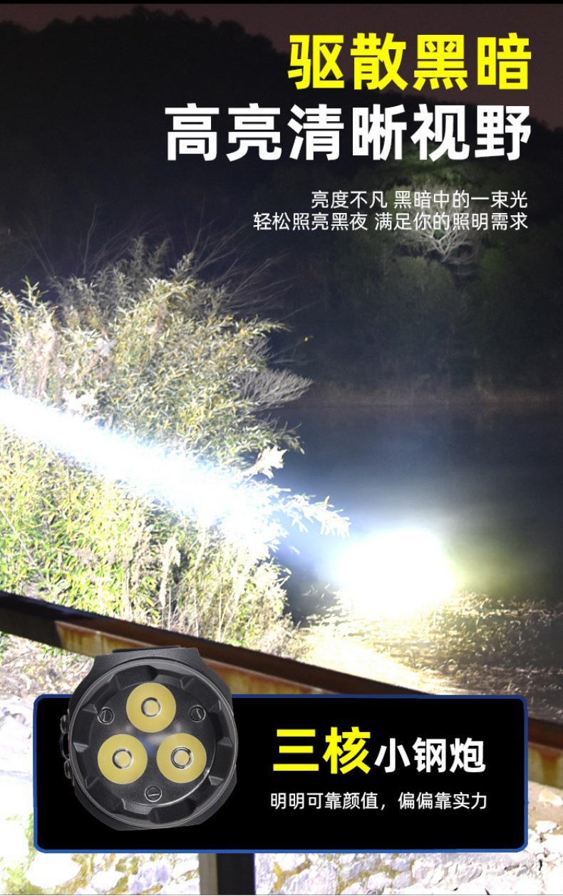 国境を越えた新型強光側灯三眼懐中電灯屋外携帯徒歩懐中電灯多機能緊急キャンプ灯