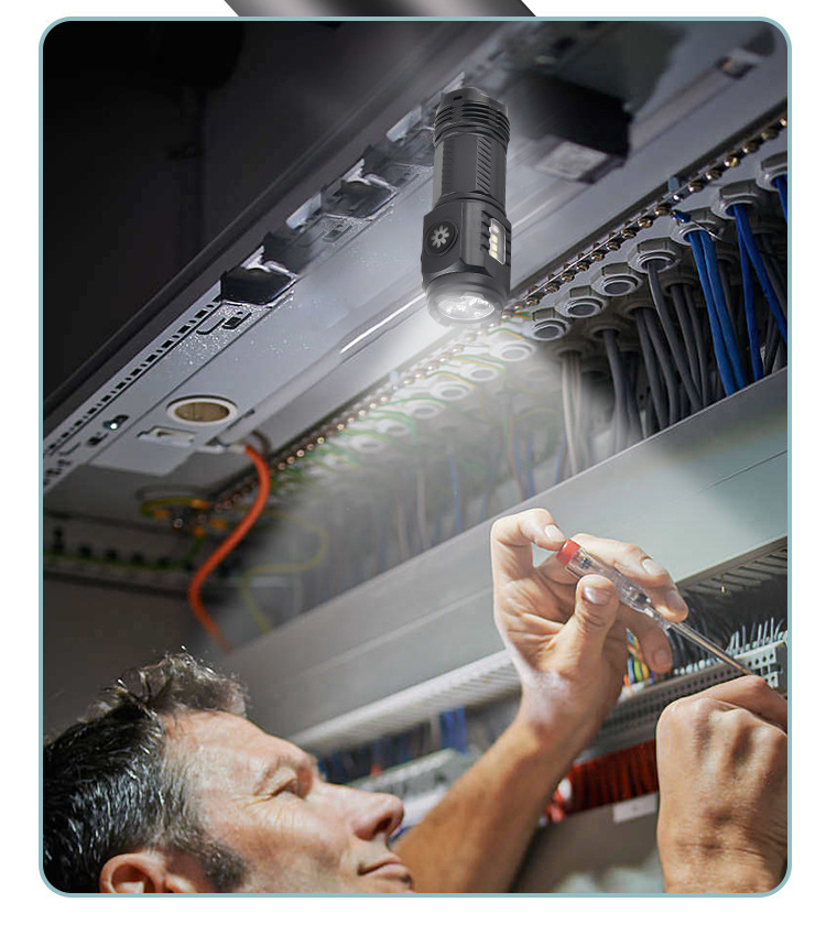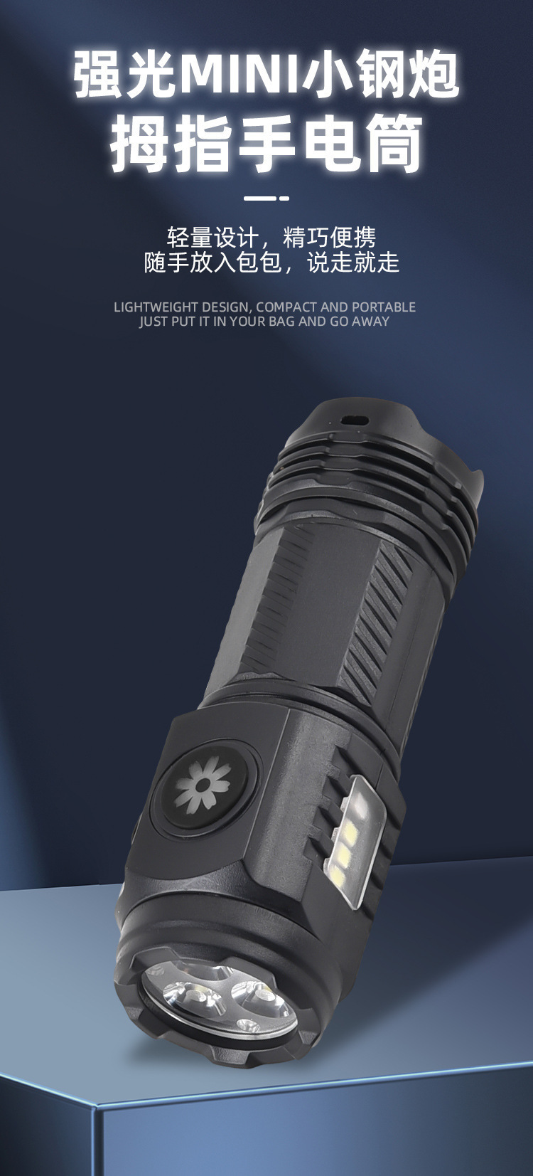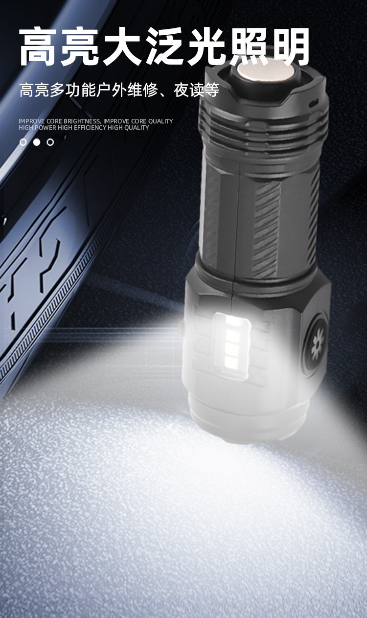 クロスボーダー遠射ABS四灯珠強光懐中電灯LEDサイドライト屋外携帯家庭用USB充電懐中電灯