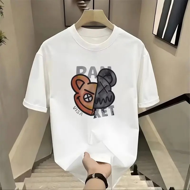クロスボーダー起爆プリント半袖tシャツ男2025年春秋韓国版新型丸襟ゆるい上着香港風