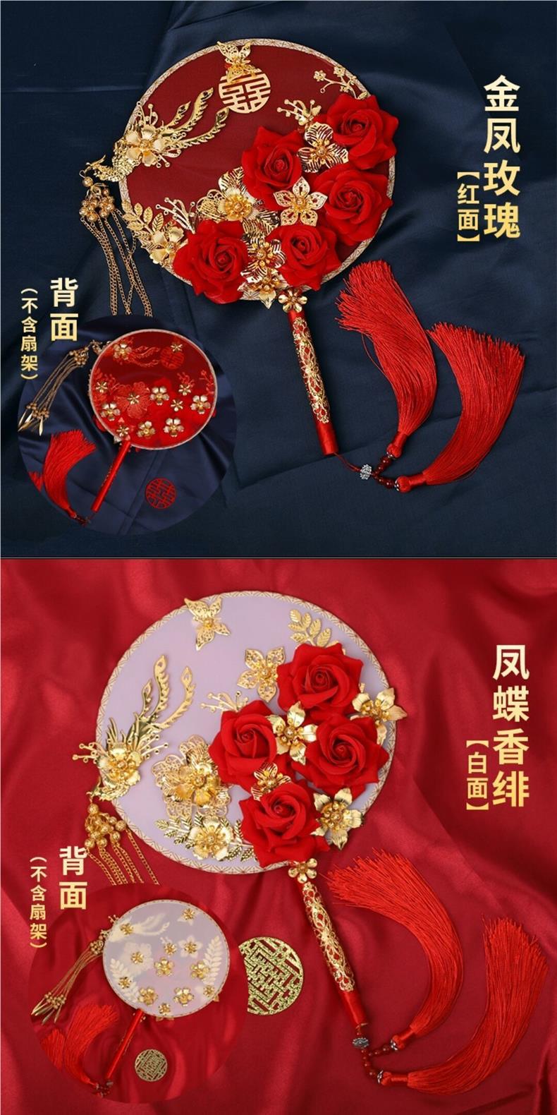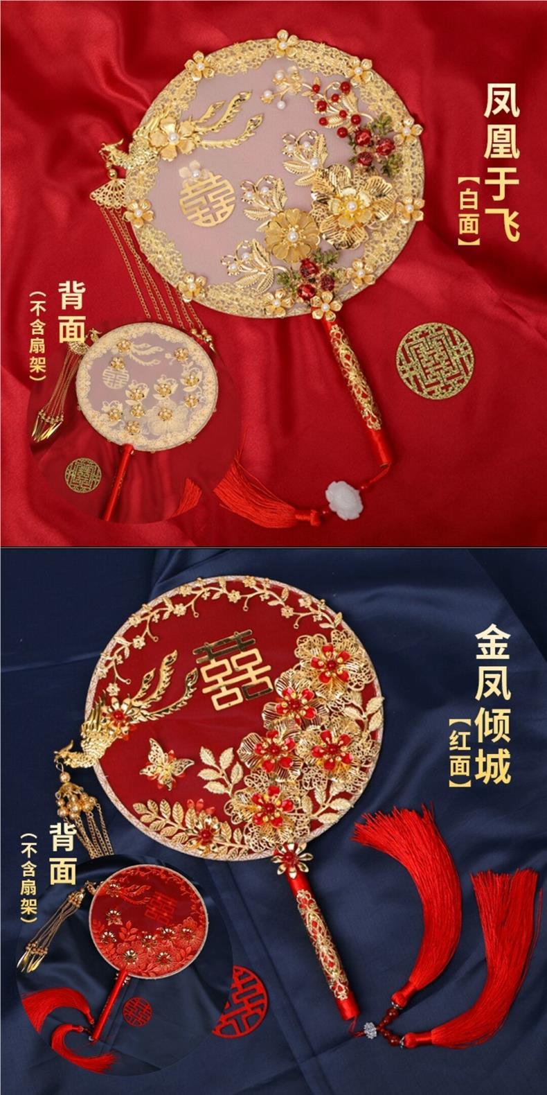 花嫁結婚団扇両面完成品女性秀イネ服扇子diy結婚喜扇中国式手作り