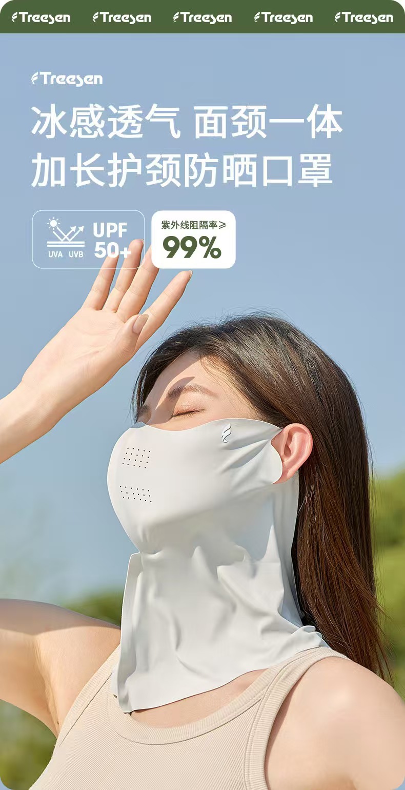 夏の新しい爆発的な首保護日焼け止め無痕男女日よけ紫外線防止マスク目尻通気氷糸マスク