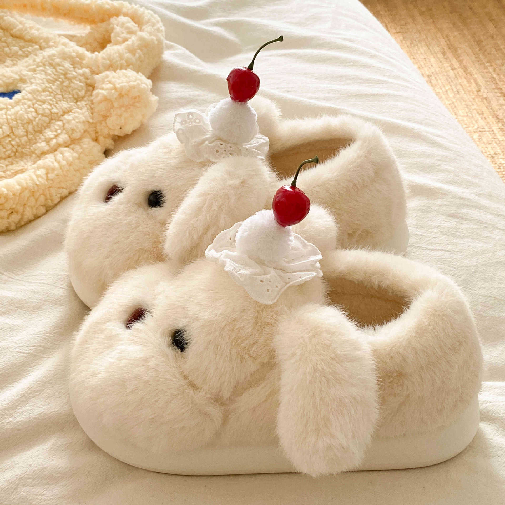 毛毛拖鞋女冬季2025新款居家室内保暖毛绒可爱小狗厚底包头棉拖鞋