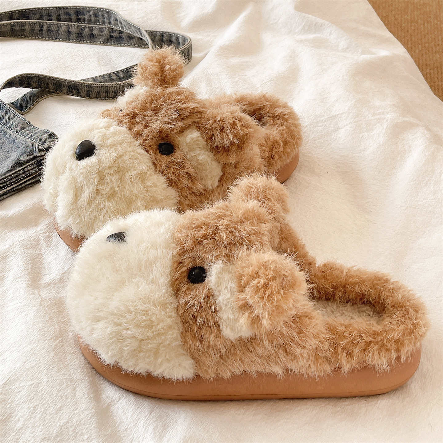 女款冬季居家防滑加绒室内棉拖鞋2025新款呆萌狗时尚百搭保暖棉鞋
