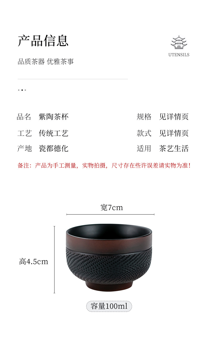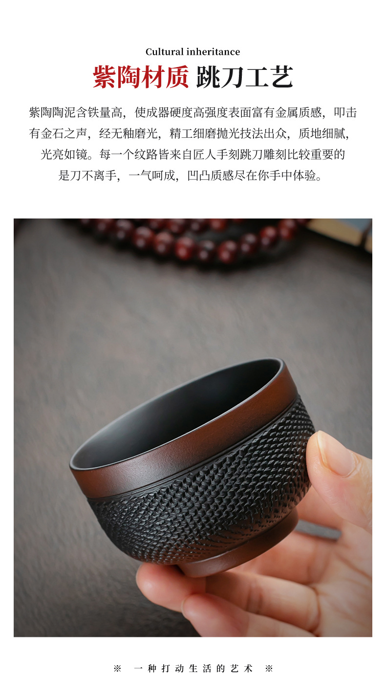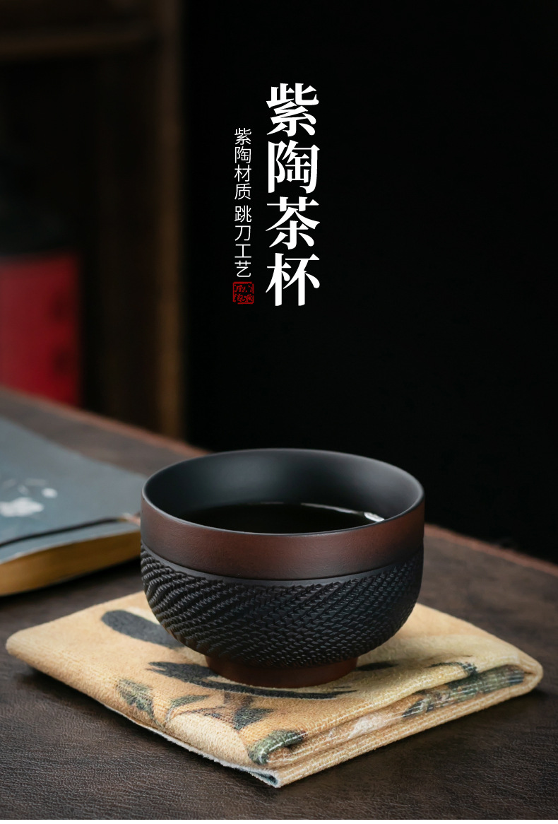 紫陶跳刀大サイズ茶杯紫泥紫砂品茗杯単杯工夫主人杯陶磁器茶杯個人杯