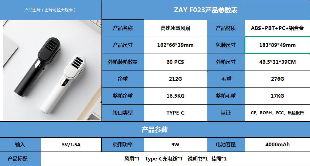 2025国境を越えた新型手持ちファン冷凍氷敷タービン高速携帯型屋外小型ファン
