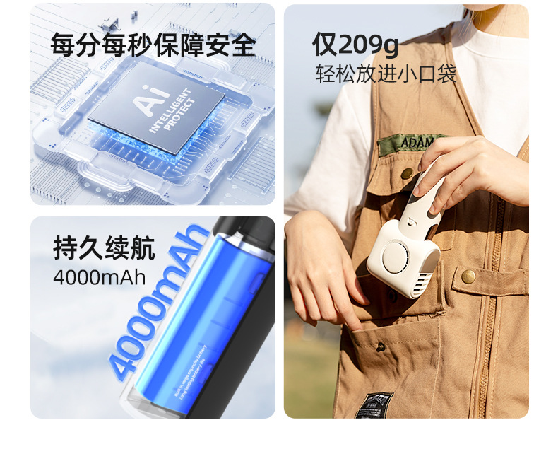 クロスボーダー新型キャンプ無葉掛腰扇風機学生屋外手持ち携帯ミニ掛腰無葉扇風機
