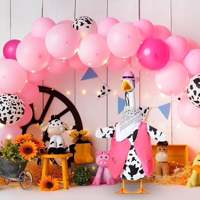 庭の大きな白いガチョウの装飾品のカウボーイ帽のマフラーのセットはペットのカウボーイ帽の方巾のポーチの装飾品を並べます。