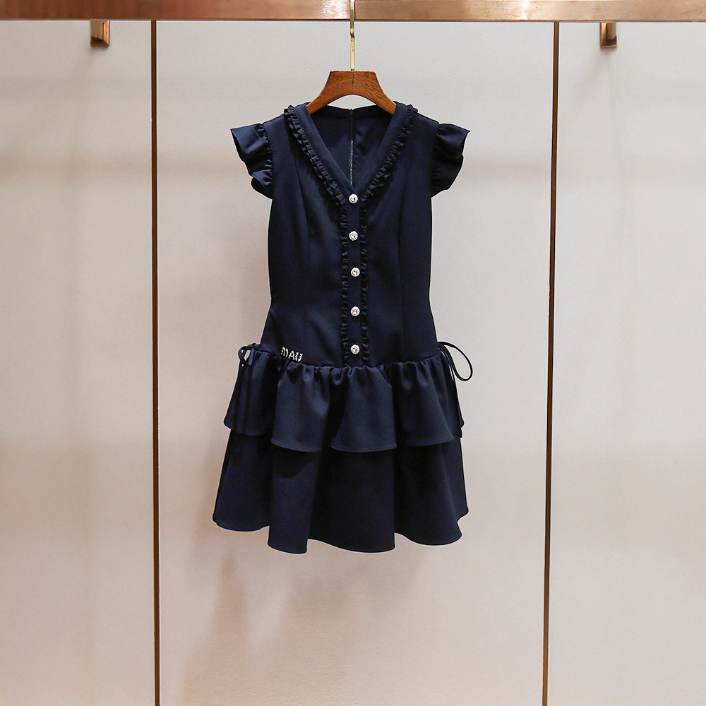 深センNanyouハイエンドレディース夏の新しいフレンチスタイルの年齢を軽減するフライングスリーブVネックスプライシングAラインケーキドレス女性用