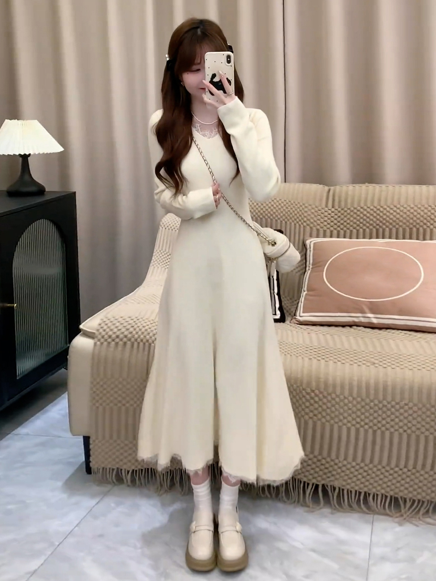 2025新款法式温柔风长袖连衣裙子女秋冬大方得体绝美内搭打底长裙
