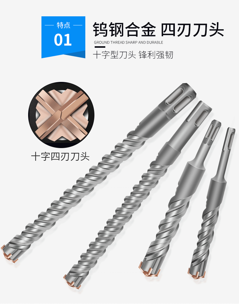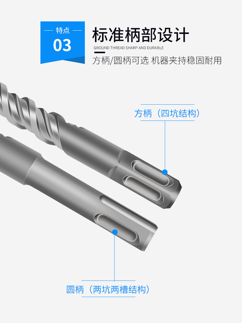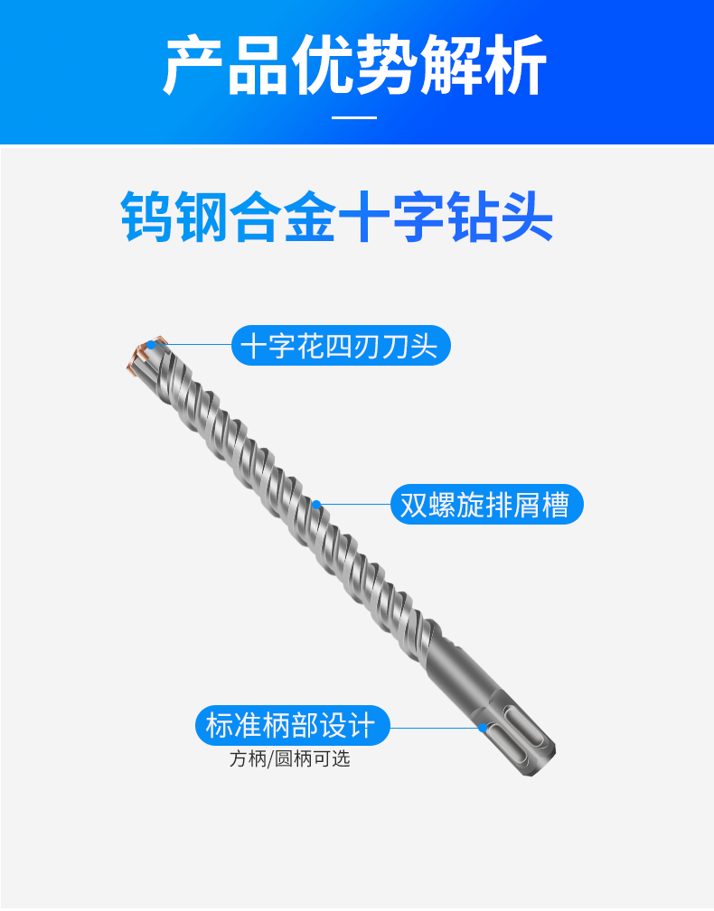 ハンマードリル十字セメントは壁の丸い柄を通って壁を越えて四角い柄を長くします。