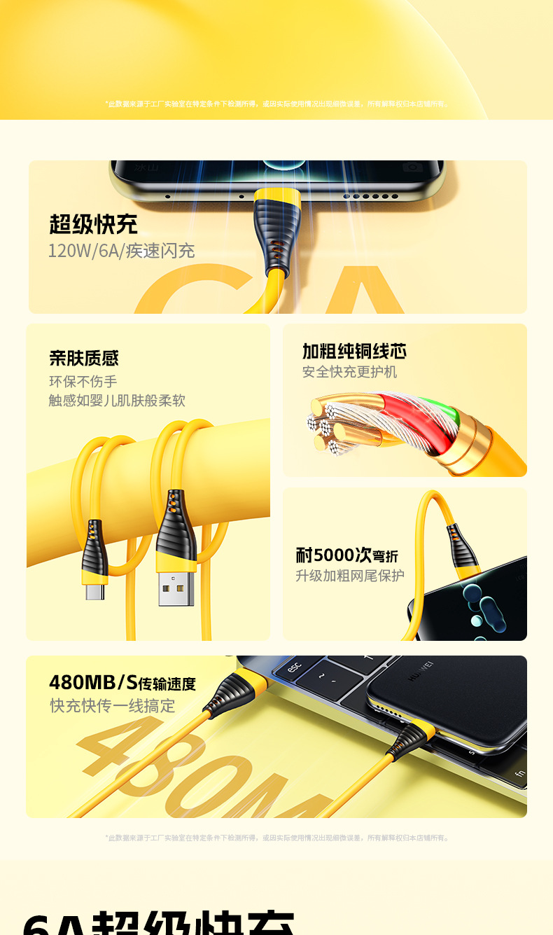 120W超高速充電データケーブルTypecシングルヘッド高速充電スプリング充電ケーブルはHuawei typecに適しており、延長可能