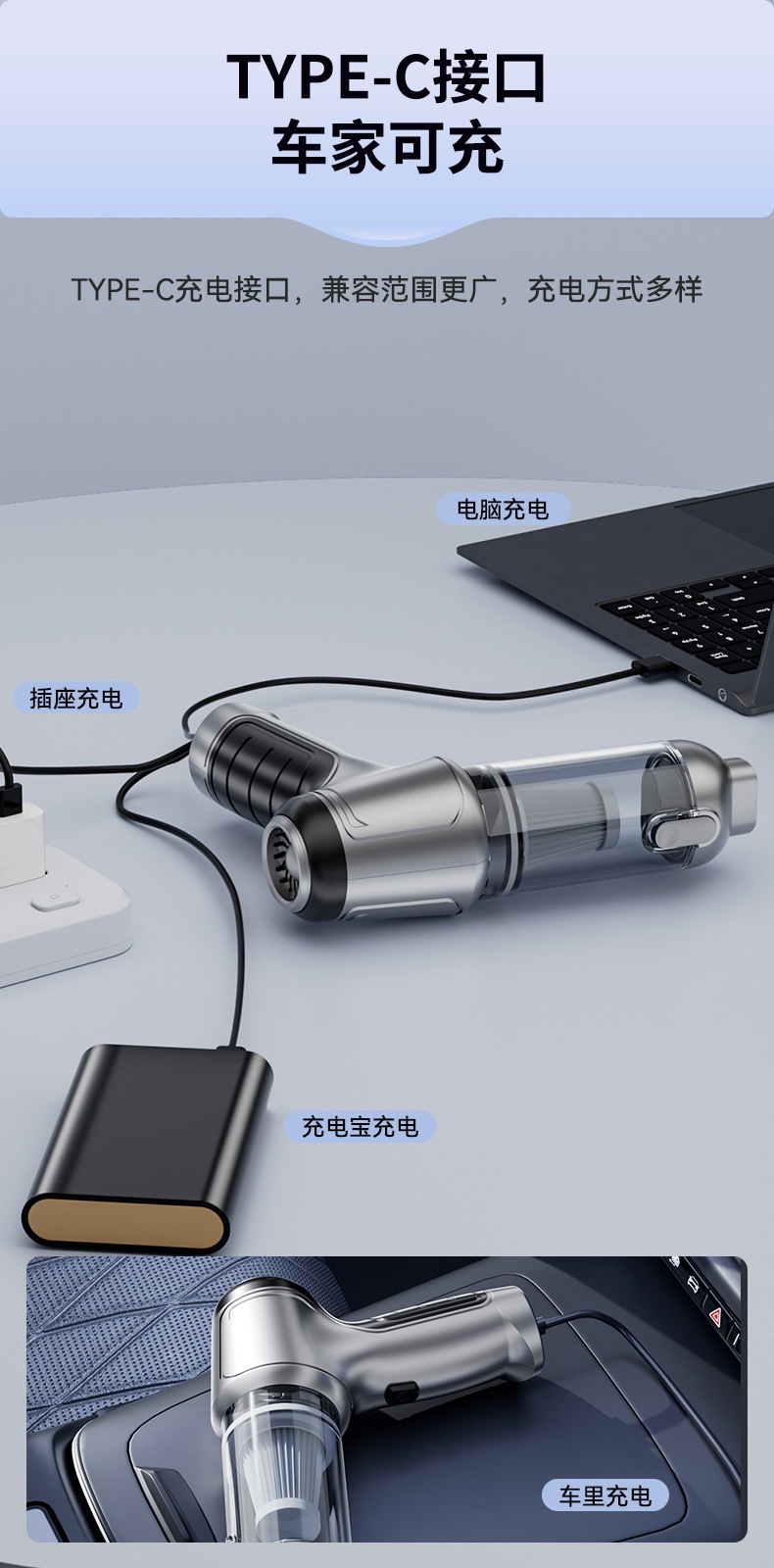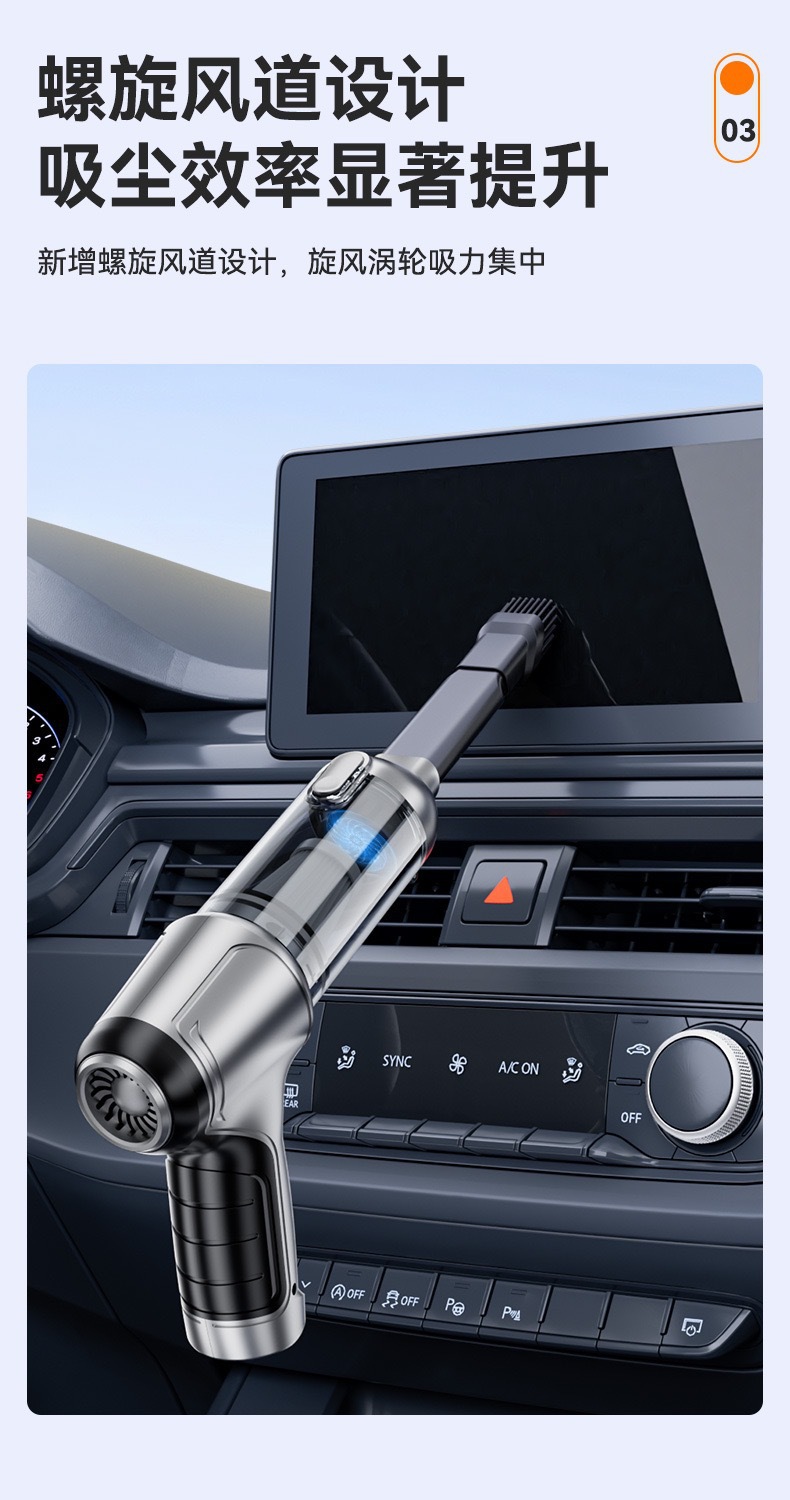 車の掃除機は無線で風を吹いて息を吸って、ブラシなしで大きな吸引力で空気を入れて充電します。