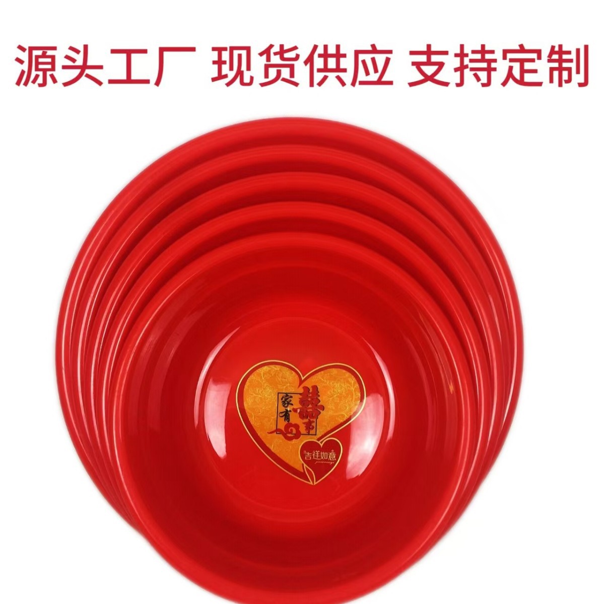 メーカー直接バッチ日常使用結婚式プラスチック大きな赤い洗面器ホームハッピーイベント洗面器結婚式赤い洗面器中国の赤い洗面器