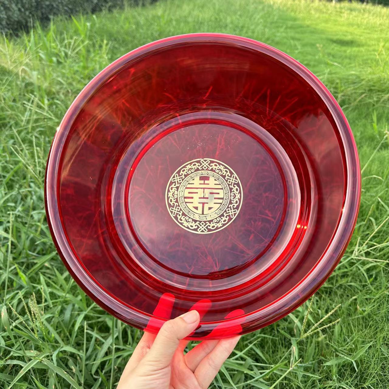 厚みがあり、落下に強く、耐久性のある結婚用洗面器、プラスチック製洗面器、結婚式用品、お祝いの赤い花嫁の嫁入り道具、洗面用の赤い洗面器