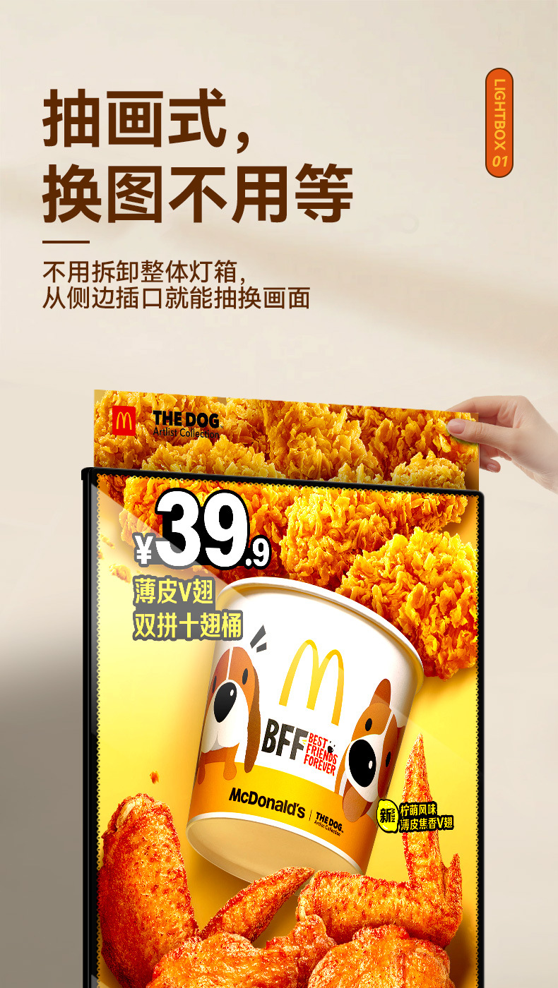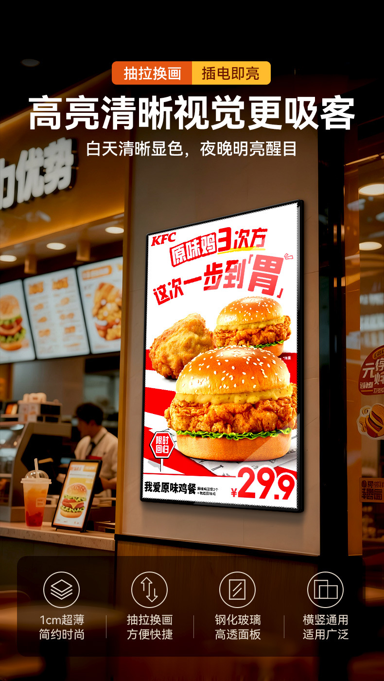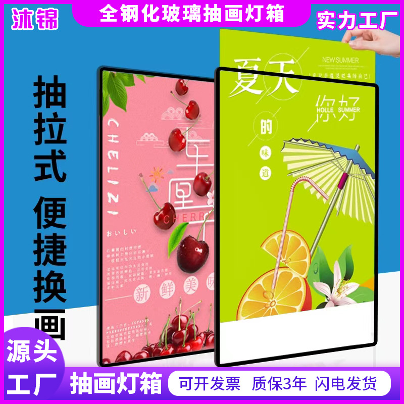 吊顶抽画灯箱钢化玻璃超薄led发光奶茶店菜单展示悬挂抽拉换画