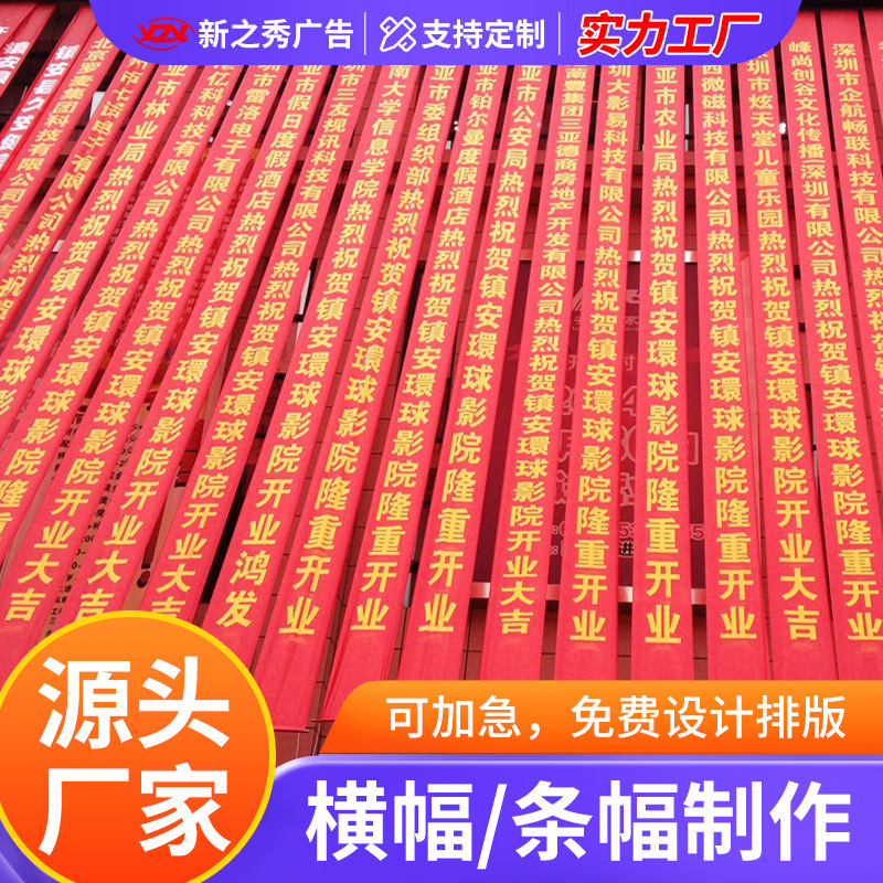 看板・横断幕制作、広告印刷、開店祝い用赤い布標識、宣伝スローガン、縦型看板、結婚式用カスタムスローガン