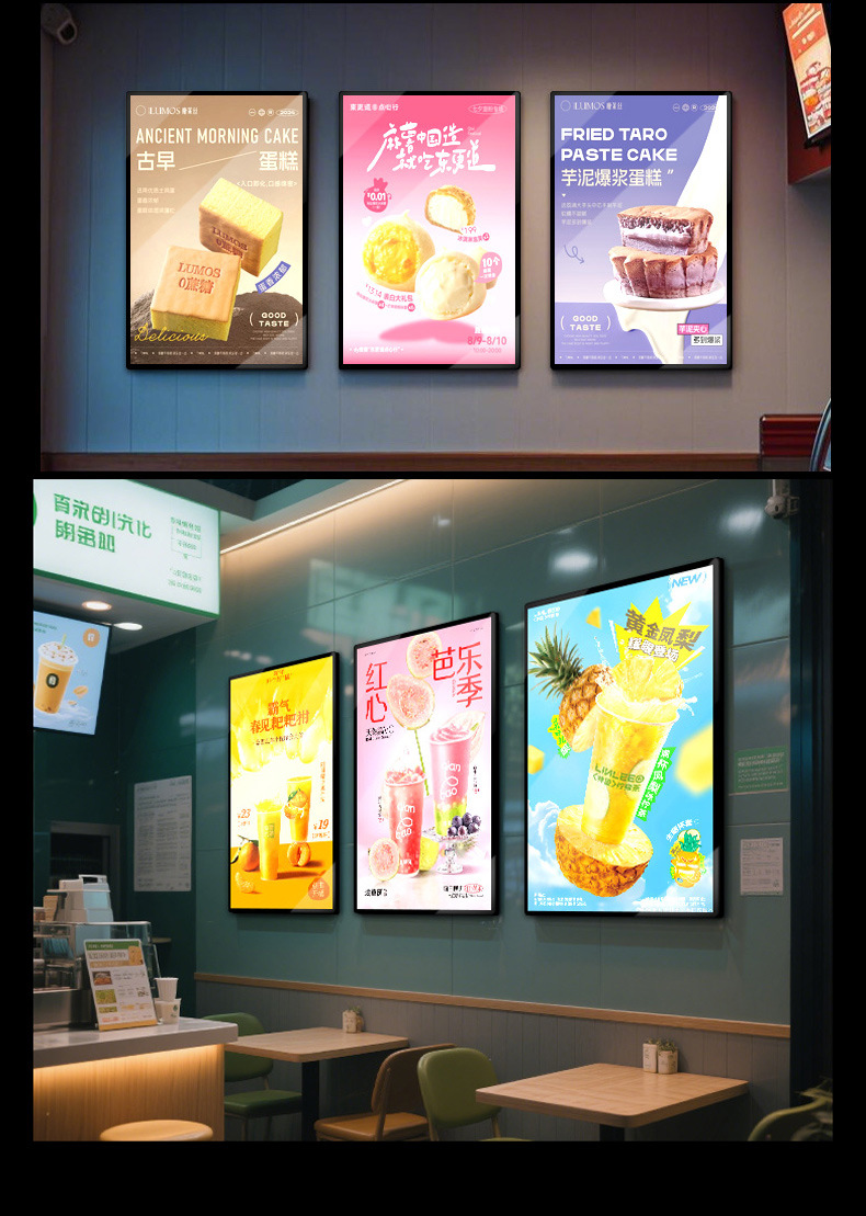 テレビのライトボックスを吊るして、超薄型の壁式のミルクティー店を掛けます。