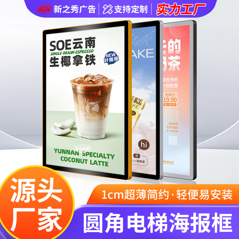 磁気ポスターフレーム、パンチングなし、角丸エレベーター広告フレーム、アクリルディスプレイボードフレーム、アルミニウム合金壁掛けフォトフレーム