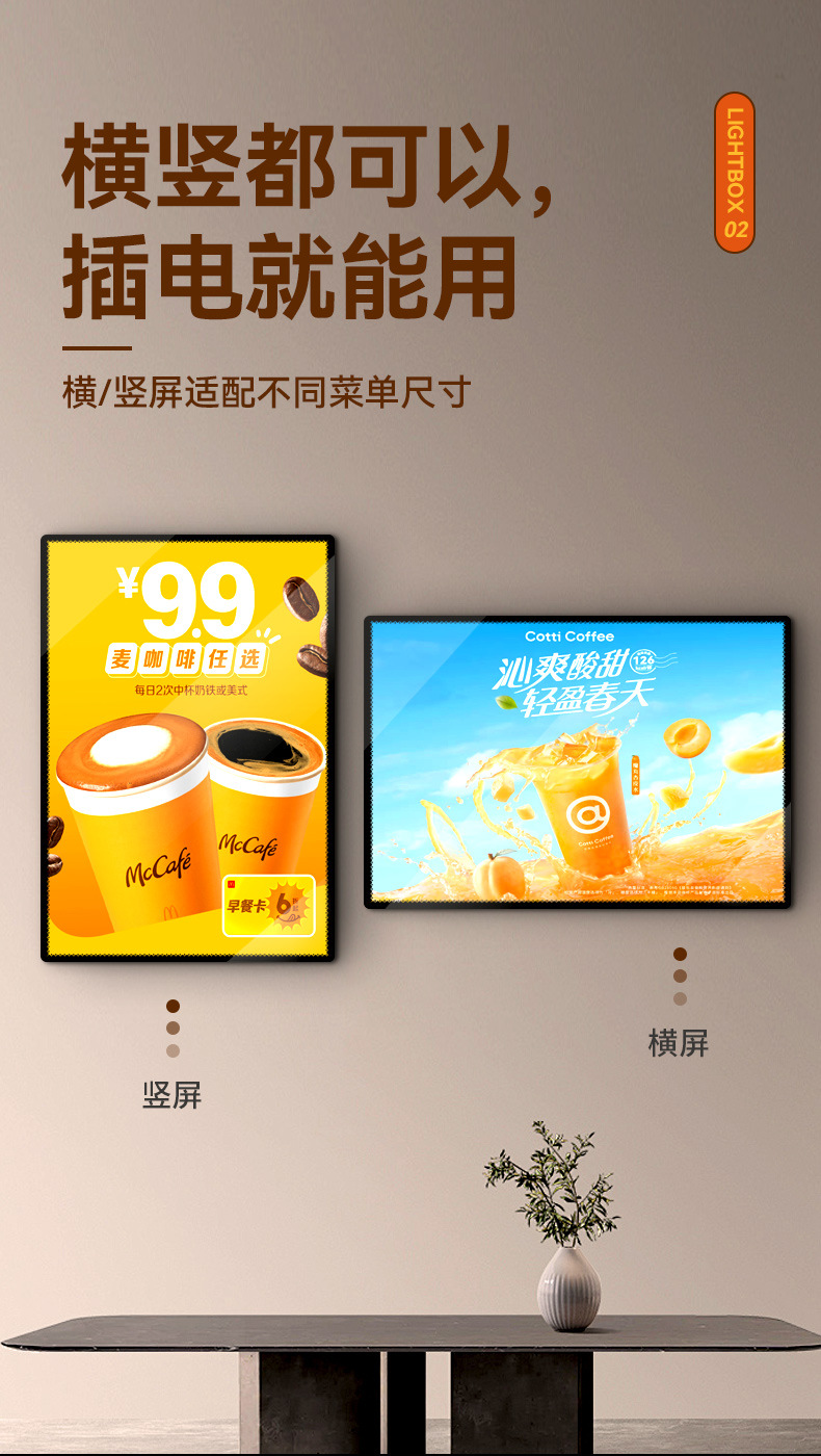 立式抽画灯箱广告牌壁挂广告门头招牌充电摆台点餐led发光展示架