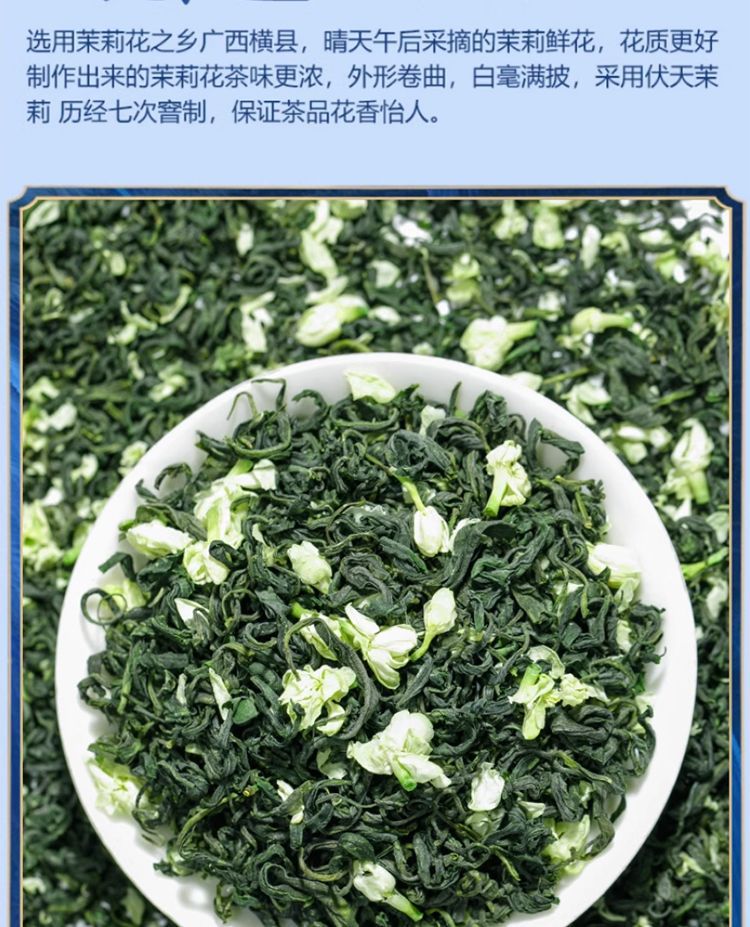 本物のお茶九窨一提茉莉飘雪茉莉花茶広西横県緑茶濃香タイプ卸売価格