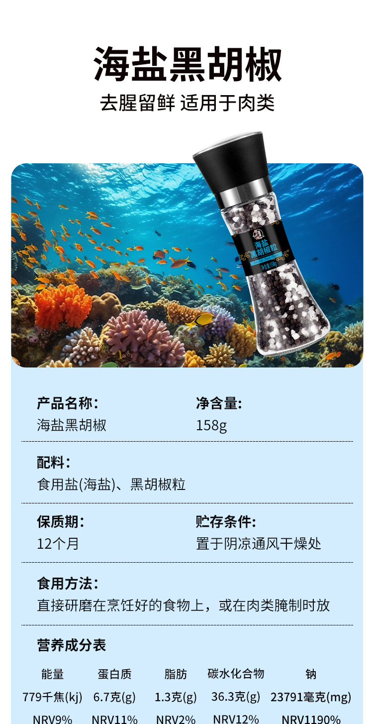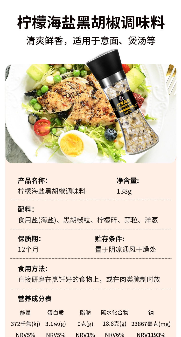 海盐黑胡椒粒研磨混合调味料柠檬欧芹大蒜盐西餐牛排调料胡椒粉碎