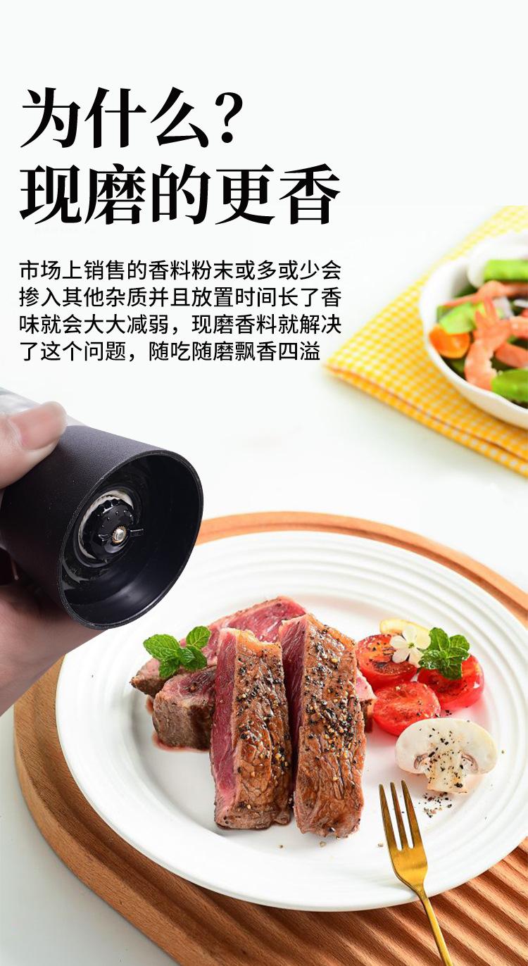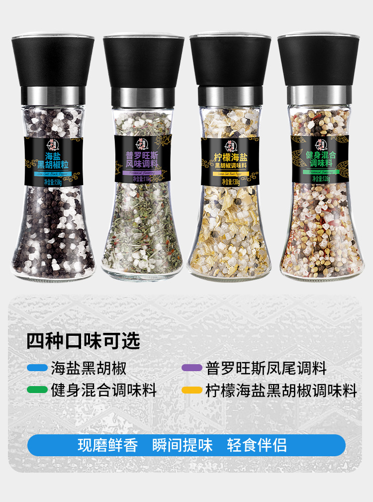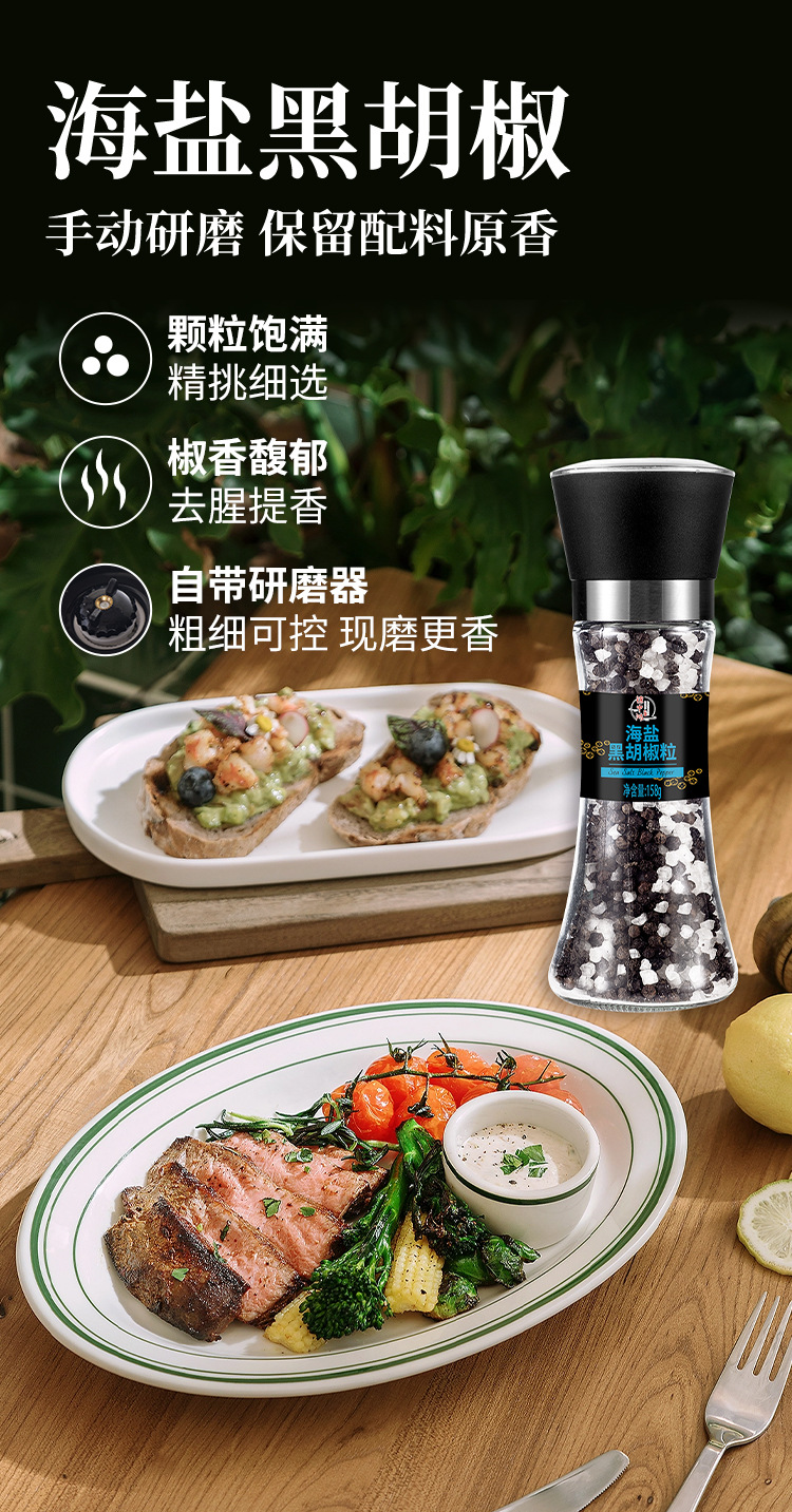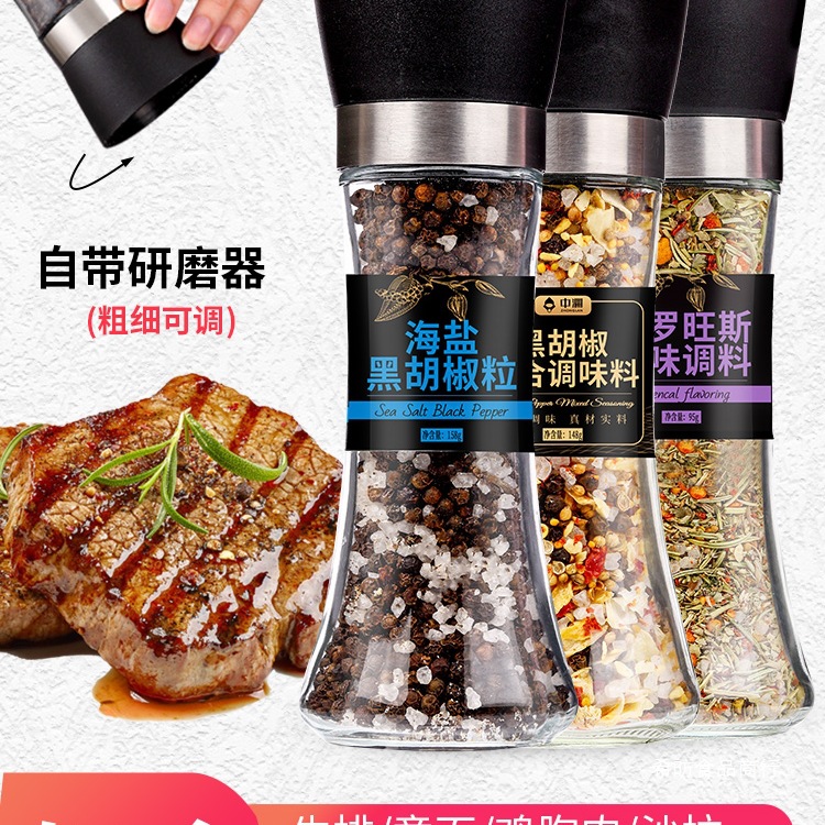 黑胡椒海盐研磨瓶现磨颗粒轻食轻卡西餐牛排佐料家用调料跨境电商