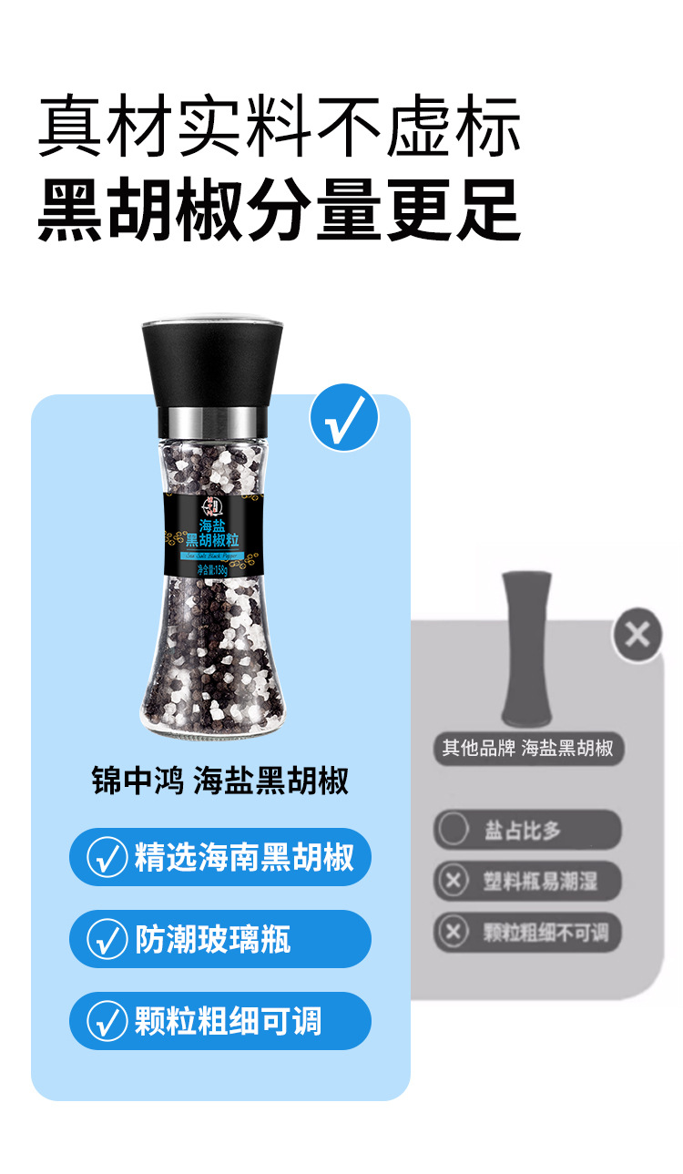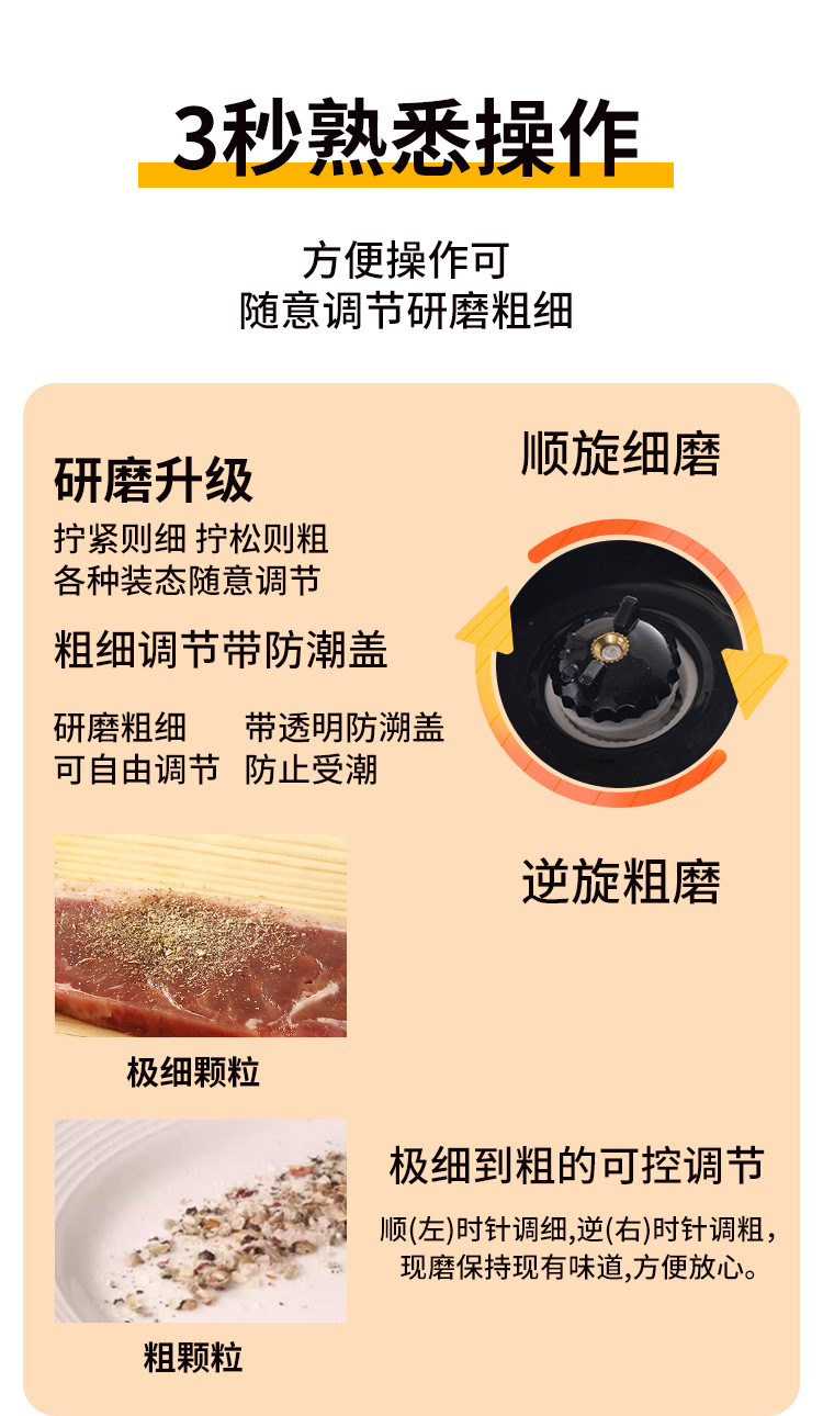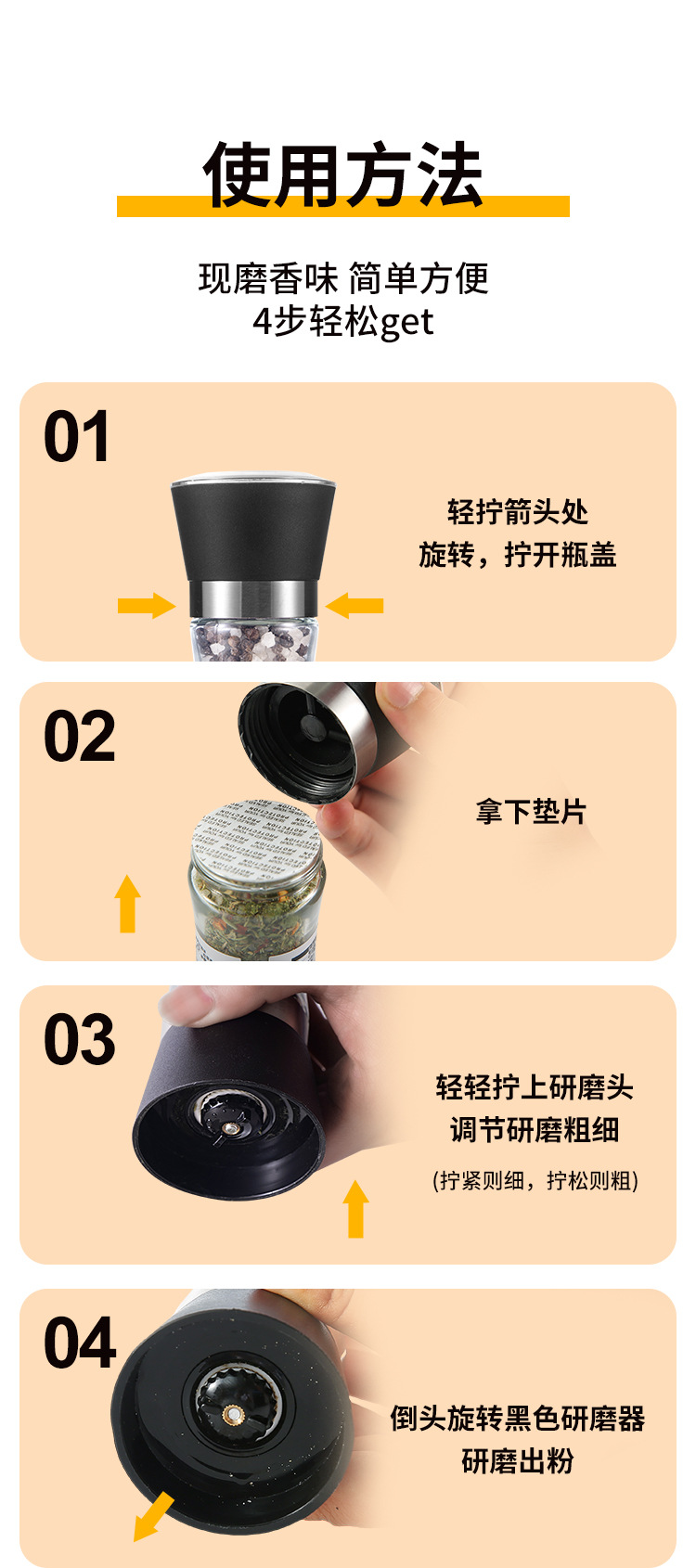 黑胡椒海盐研磨瓶现磨颗粒轻食轻卡西餐牛排佐料家用调料跨境电商