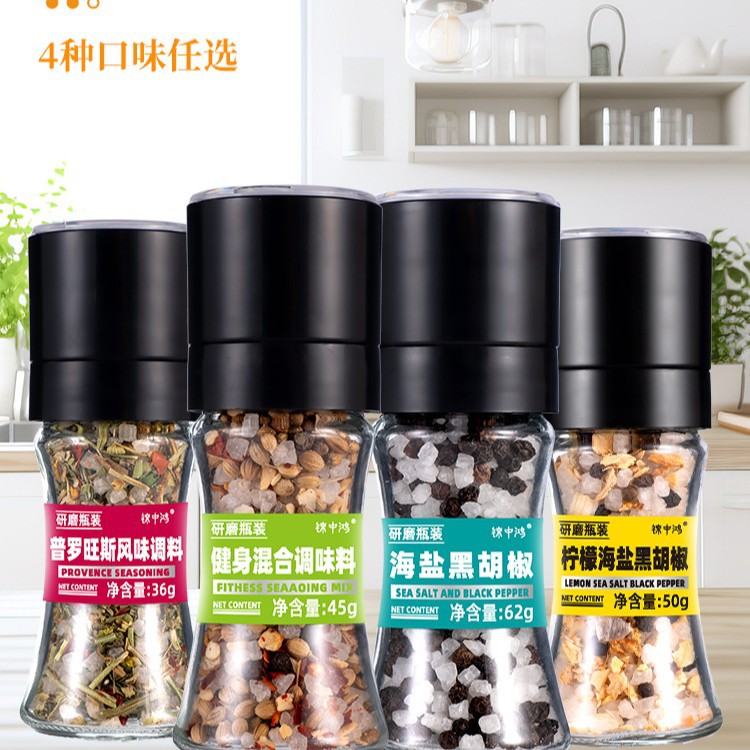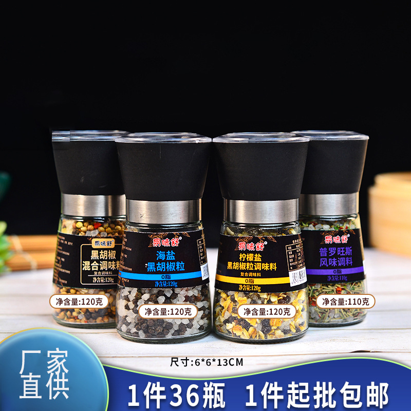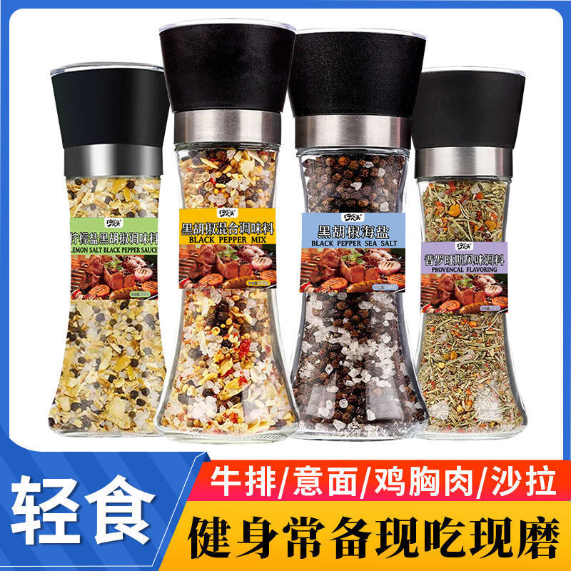 黑胡椒海盐研磨瓶装混合调味料柠檬颗粒鸡胸肉牛排西餐胡椒粒批发