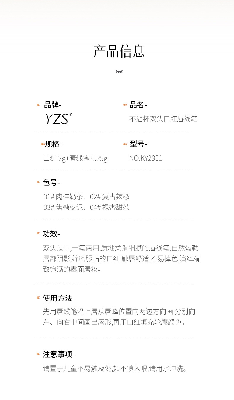 YZS柔雾双头口红勾勒饱满唇形雾面哑光唇线笔显白持妆不沾杯Y2901