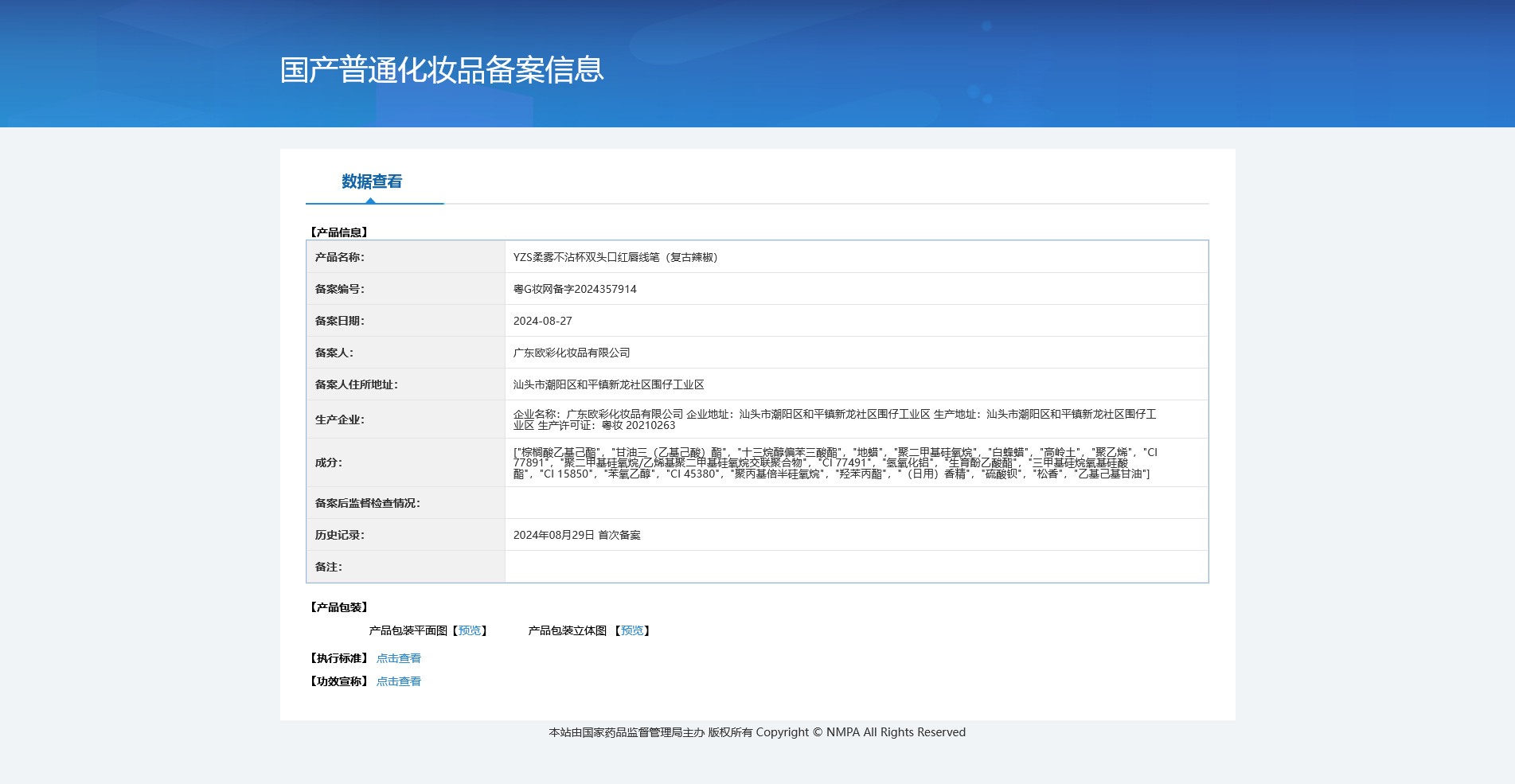特殊化粧品登録証番号 広東省Gメイクアップネットワーク準備番号2024357914