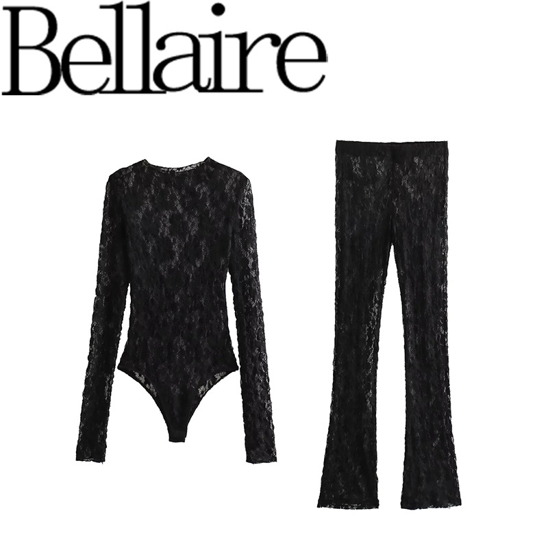 ZA外贸批发 欧美风法式女装修身蕾丝连体衣开叉设计打底裤 021916