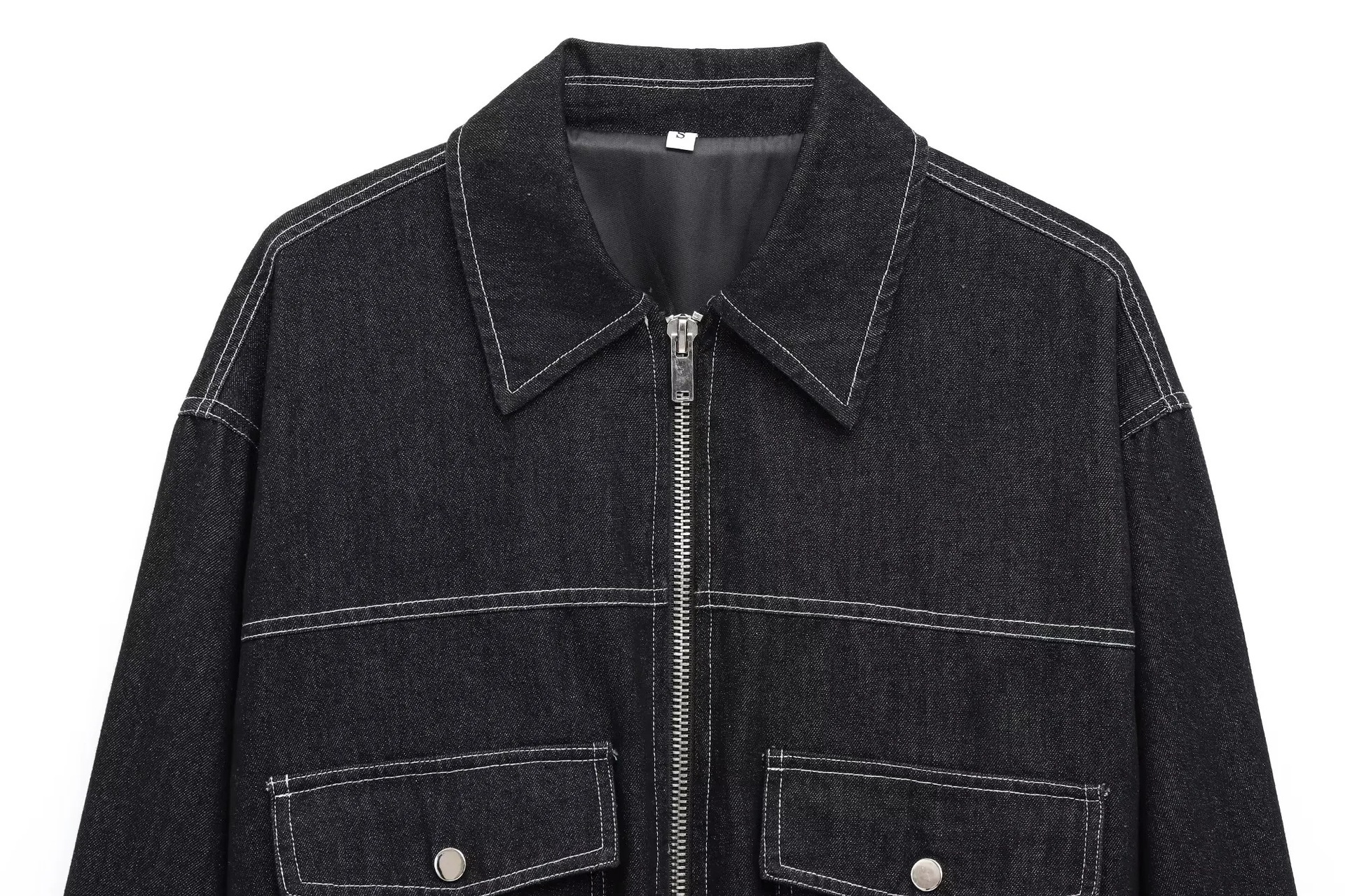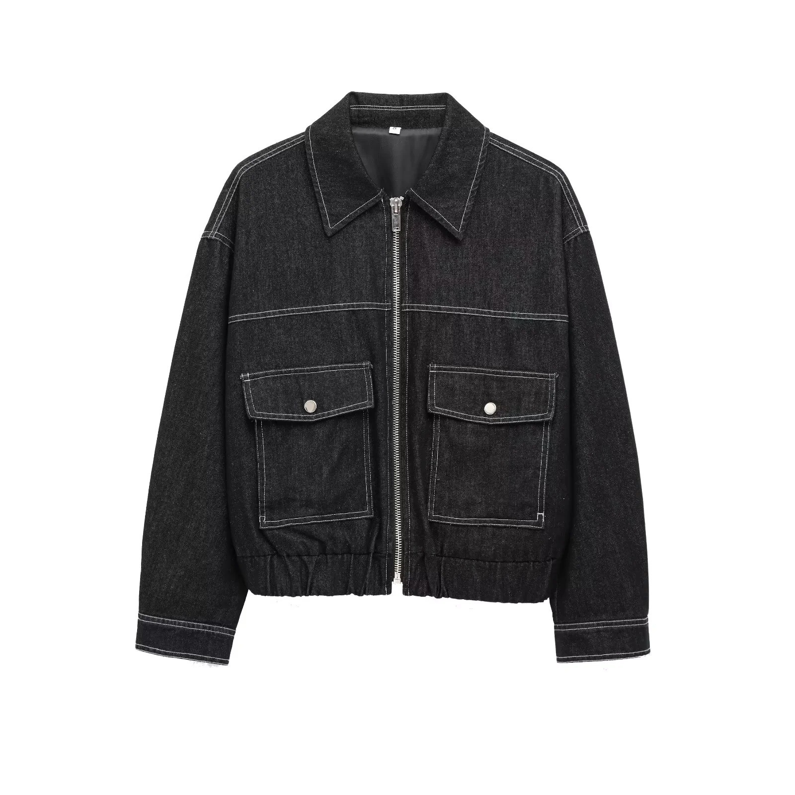 ZA外国貿易婦人服卸売り襟ファスナーデニムジャケットゆるいストレート長ズボンセット21968500